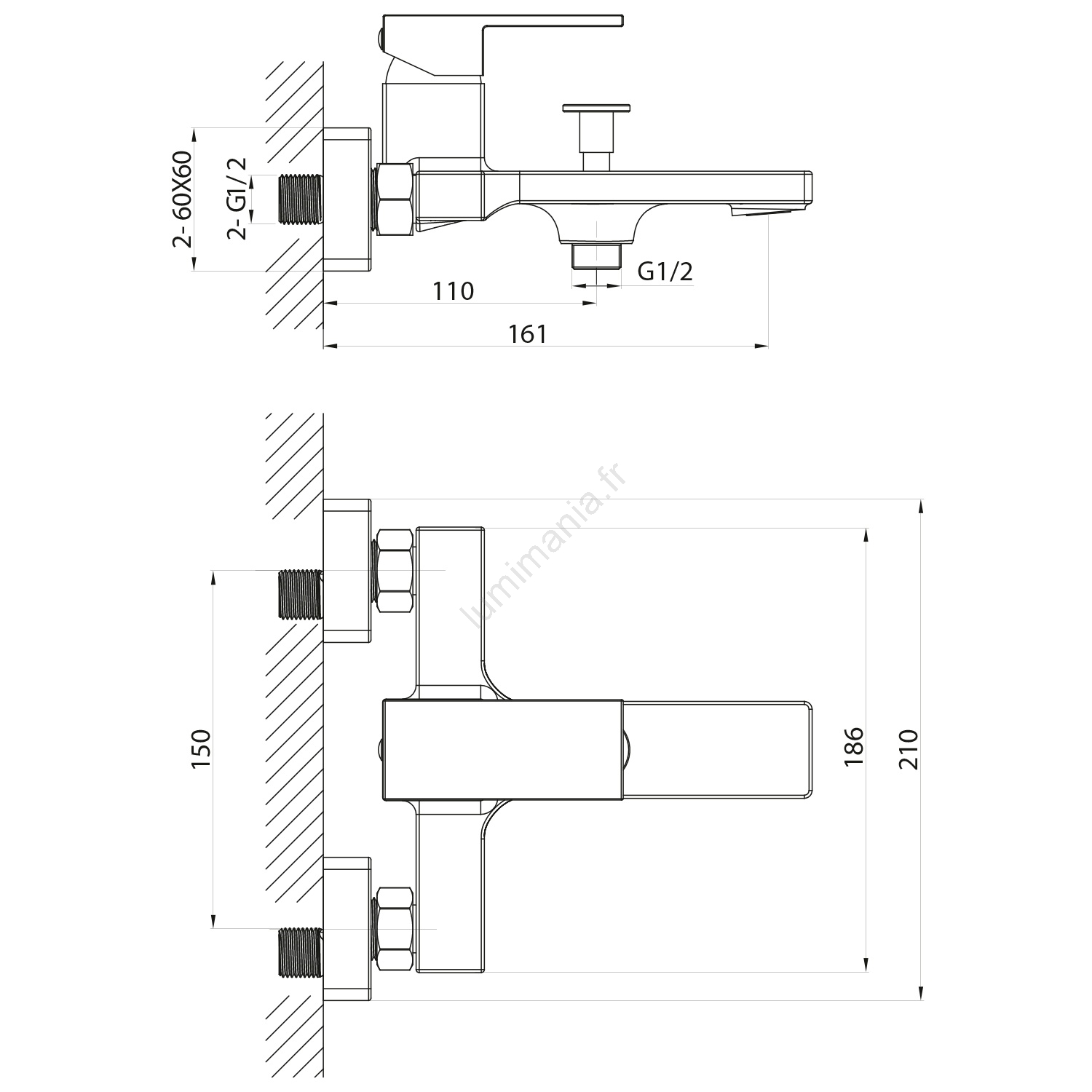 • Ce mitigeur de baignoire allie design moderne et fonctionnalité.
