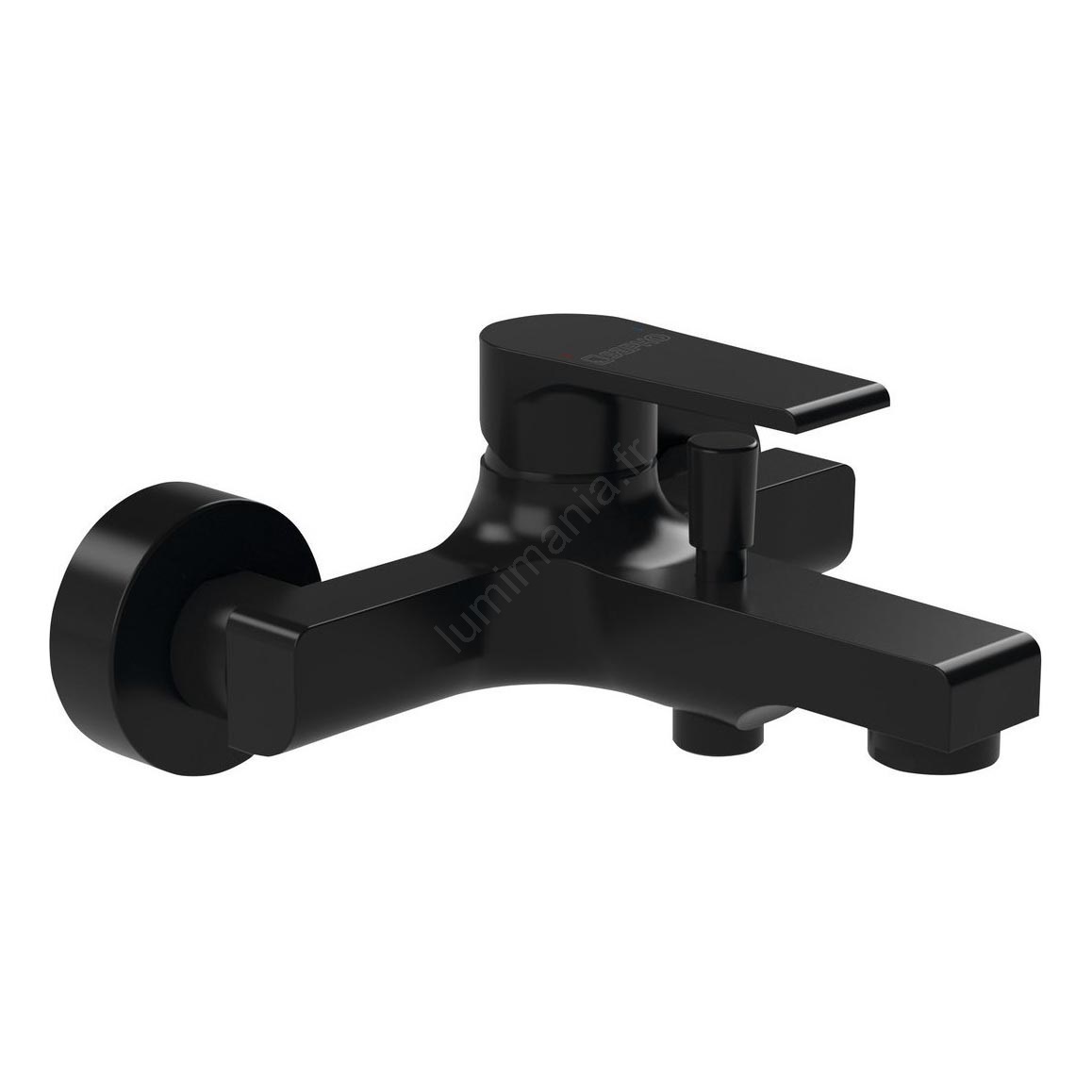 • Ce mitigeur de baignoire associe un corps cylindrique à un bec anguleux.