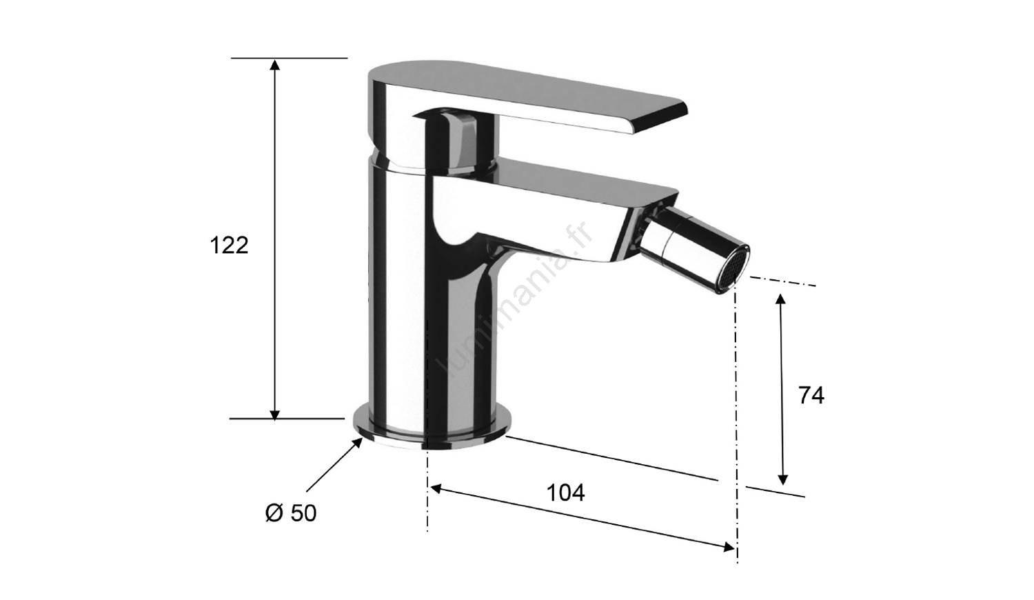 • Ce mitigeur de bidet présente un corps cylindrique et un bec angulaire.