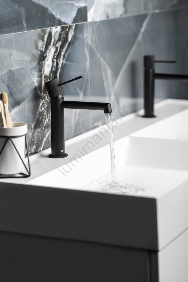 • La finition noire mate élégante s'adapte parfaitement à tous les intérieurs de salle de bains.