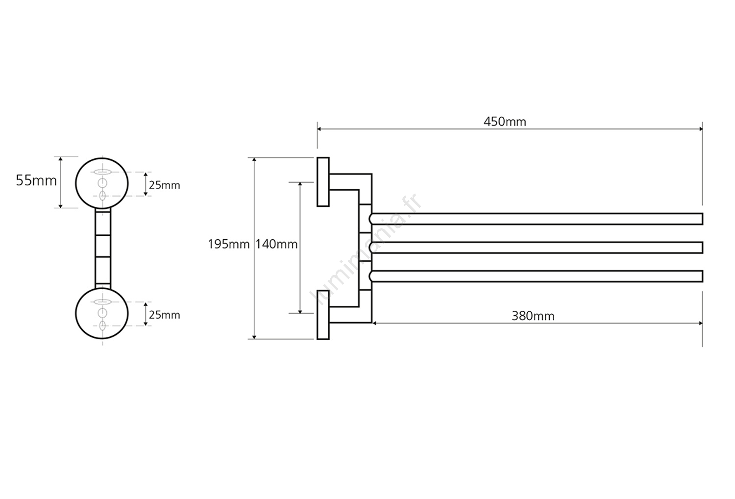 Sapho - Porte-serviettes mural pivotant X-ROUND 19,5x45 cm chromé brillant