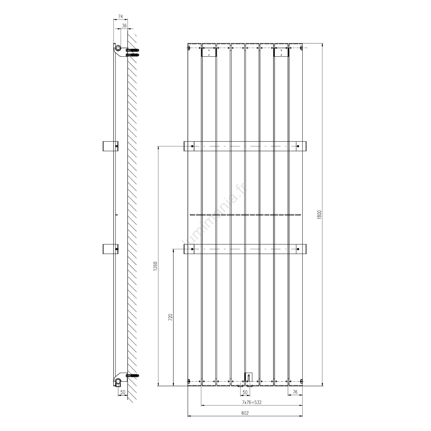 Sapho - Sèche-serviettes COLONNA 1205W/230V 60x180 cm argenté