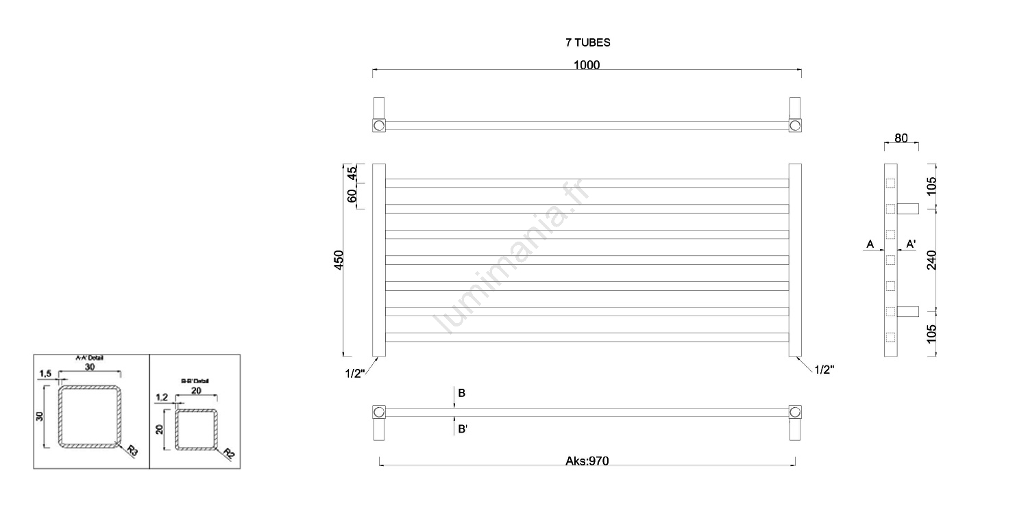 Sapho - Chauffe-serviettes METRO 295 W / 230 V 100 x 45 cm, chrome brillant