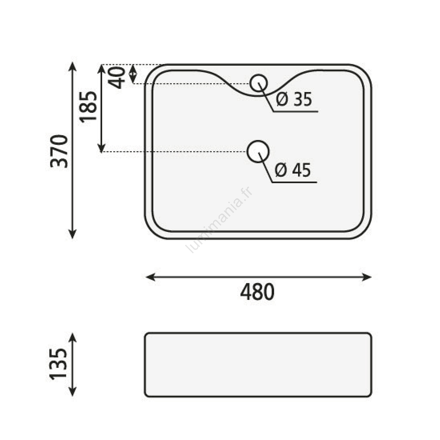 • Lavabo conçu pour être posé sur plan de travail.
