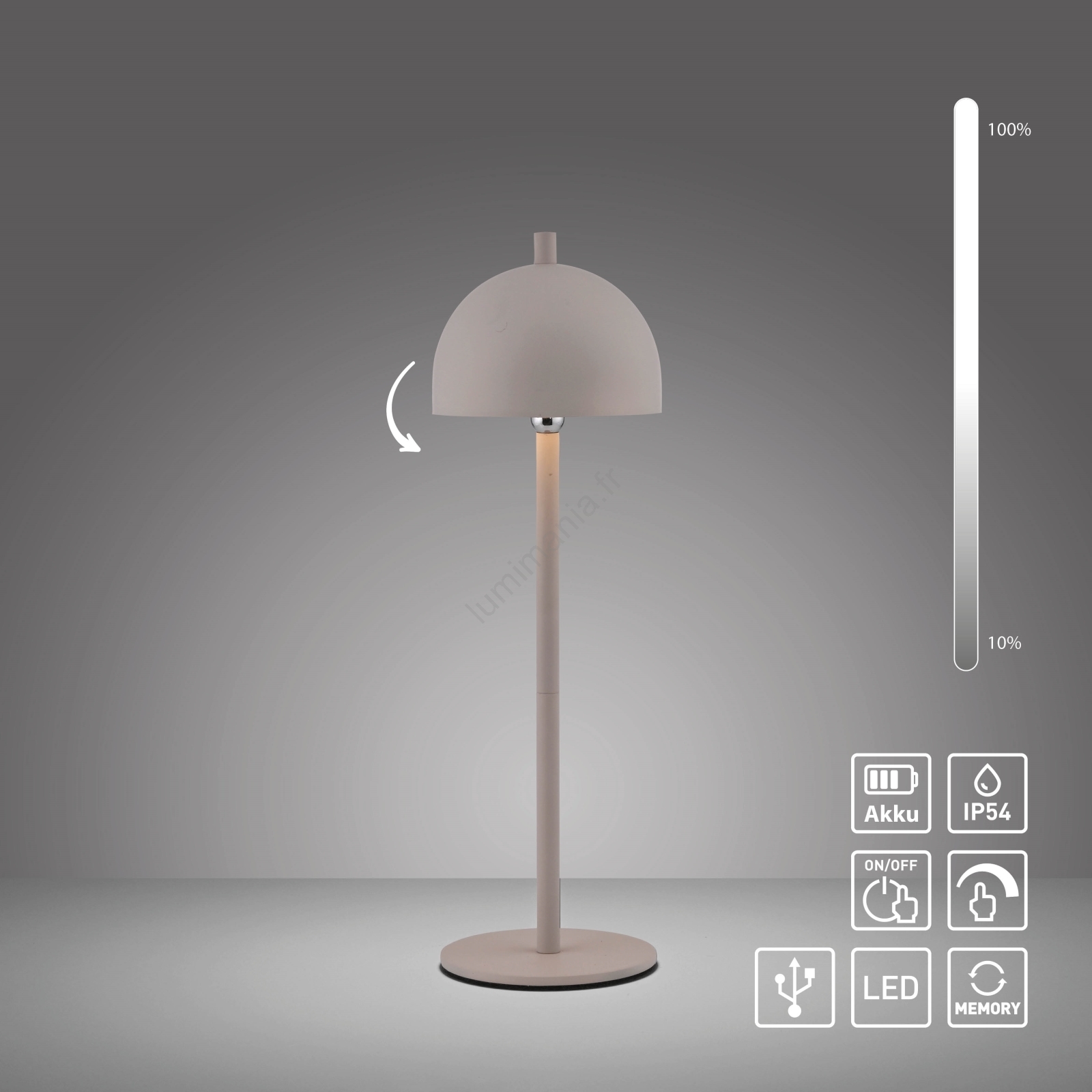 Schöner Wohnen 19244-39 - Lampe de table d'extérieur rechargeable tactile et dimmable BELLIS LED/2,5W/5V 2600 mAh IP54 grise
