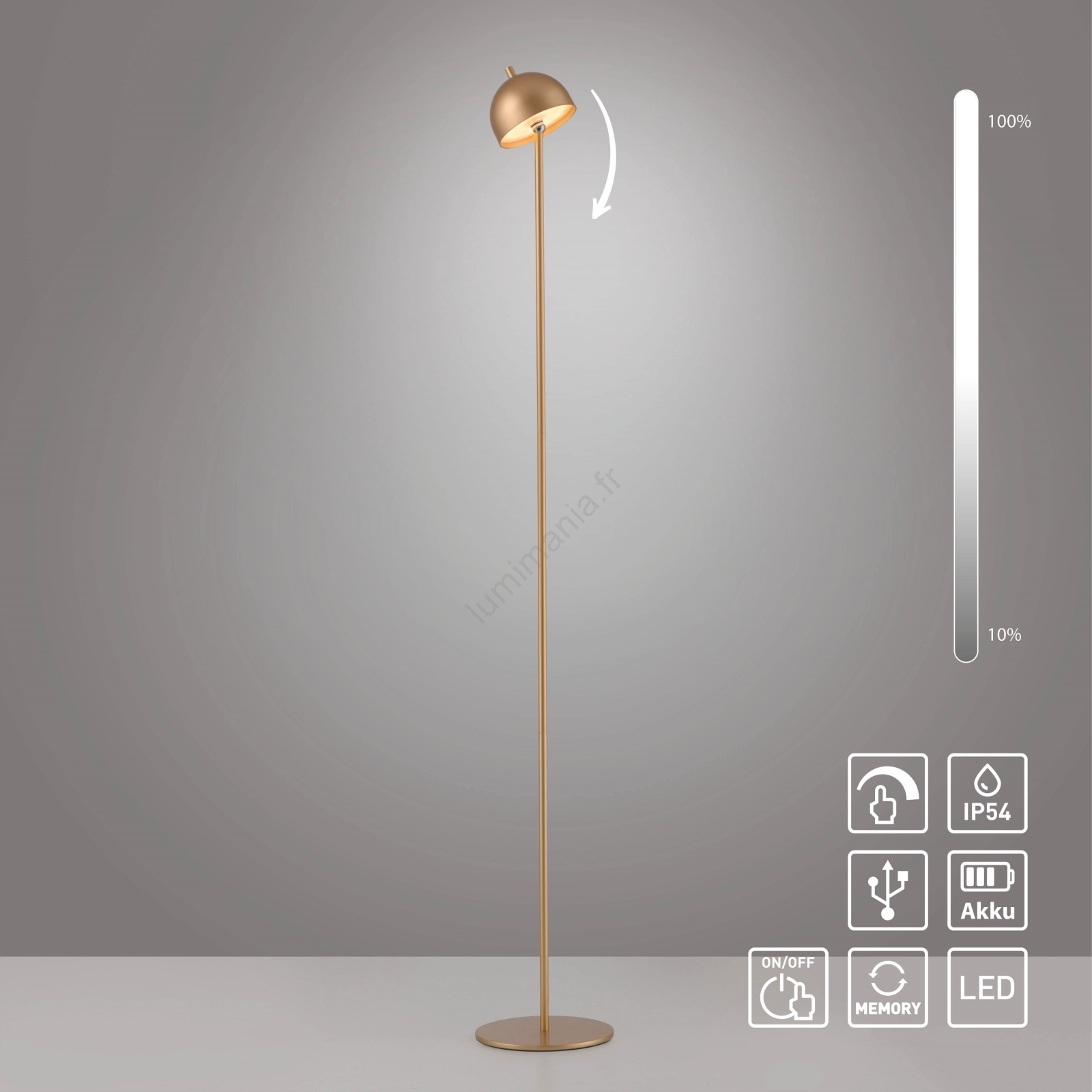 Schöner Wohnen 19245-12 - Lampe sur pied d'extérieur LED BELLIS, tactile, dimmable et rechargeable, 2,5 W/5 V, 2600 mAh, IP54, dorée