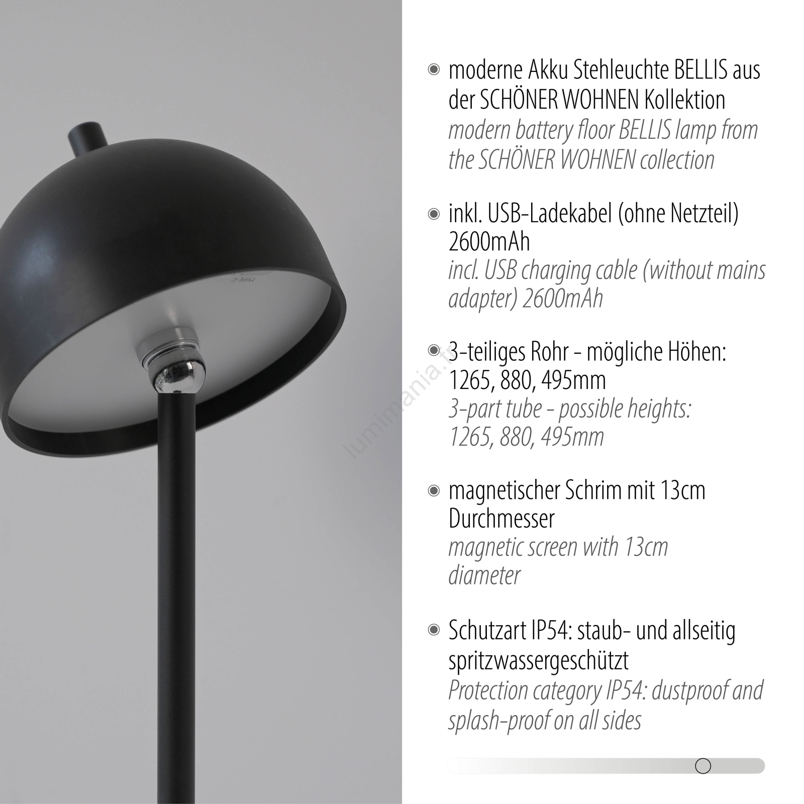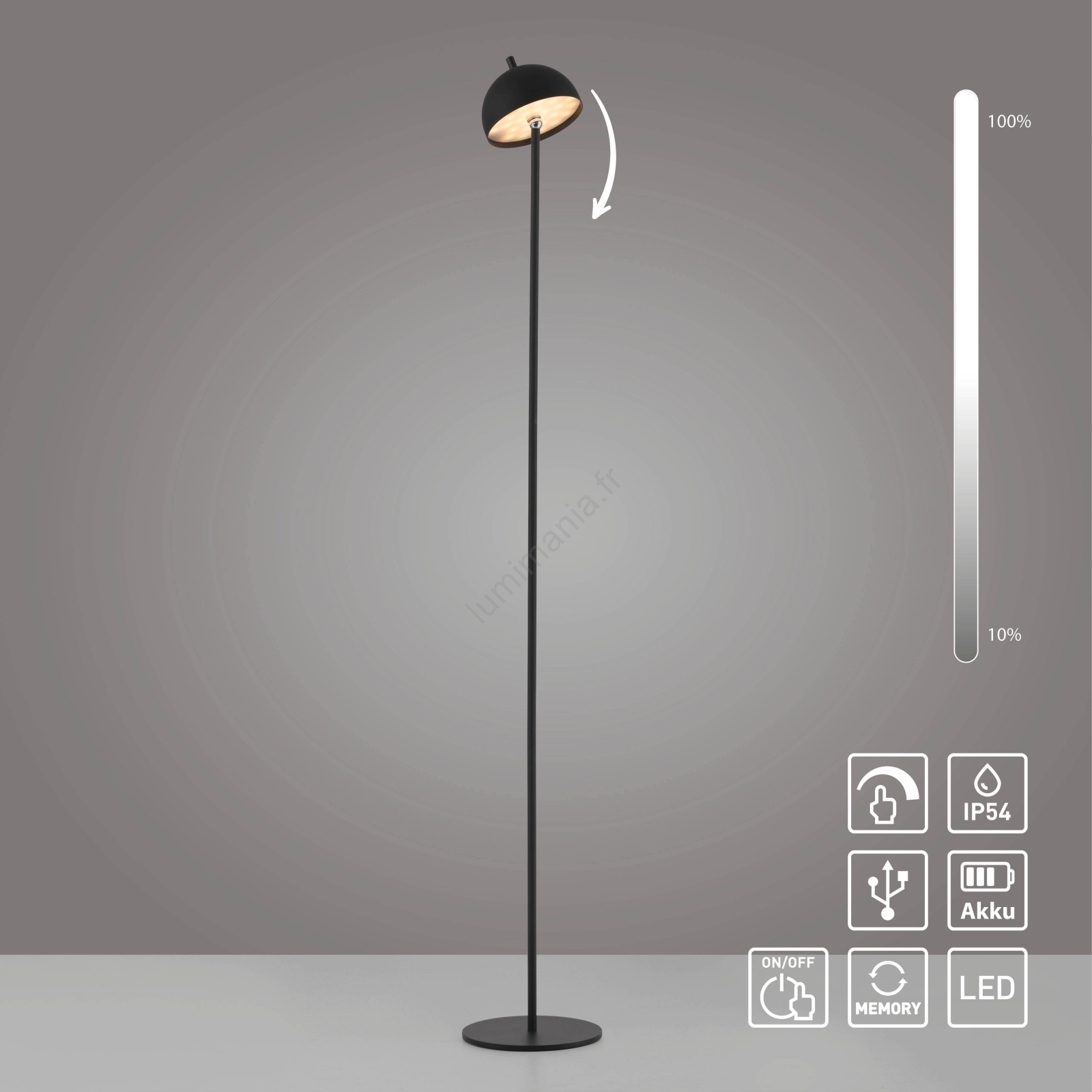 Schöner Wohnen 19245-18 - Lampadaire d'extérieur LED dimmable à commande tactile, rechargeable BELLIS LED/2,5W/5V 2600 mAh IP54 noir