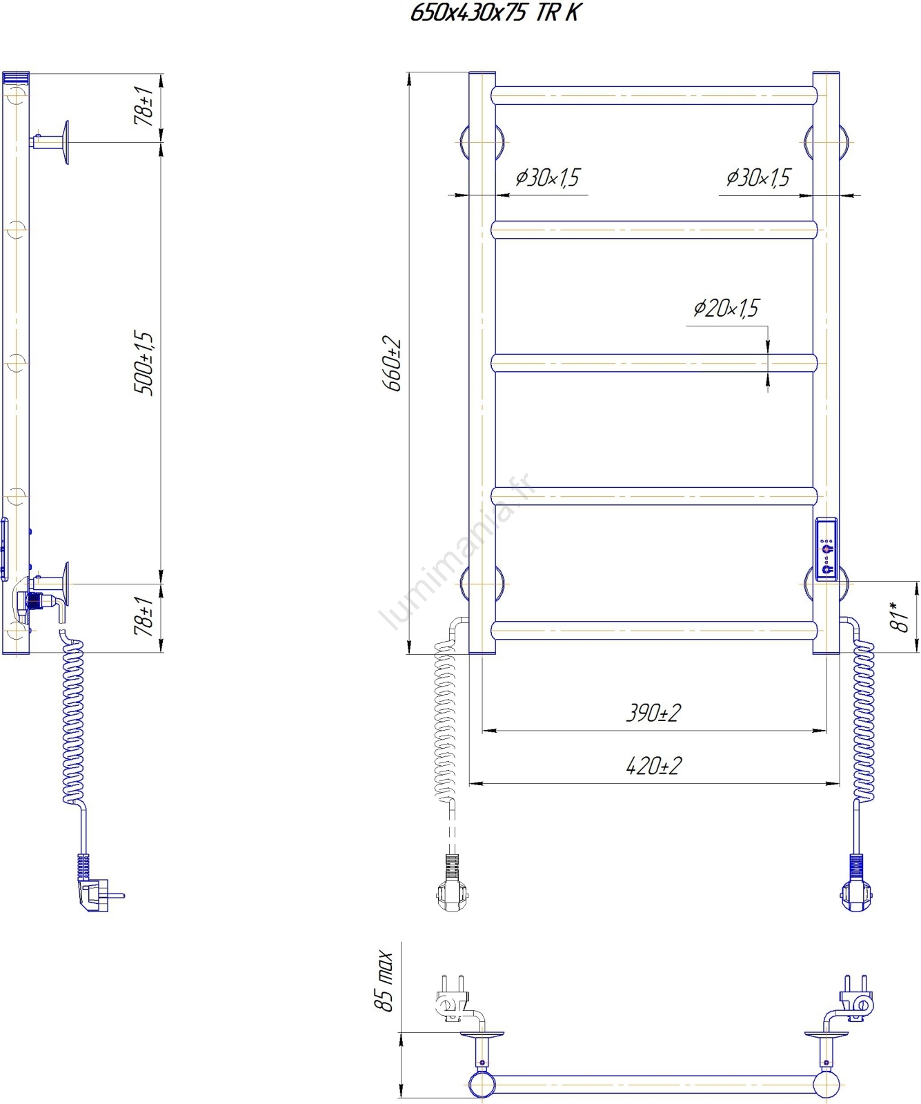 Sèche-serviettes électrique en échelle CLASSIC 65 W / 230 V 65 x 43 cm acier inoxydable / chrome brillant, orientation droite