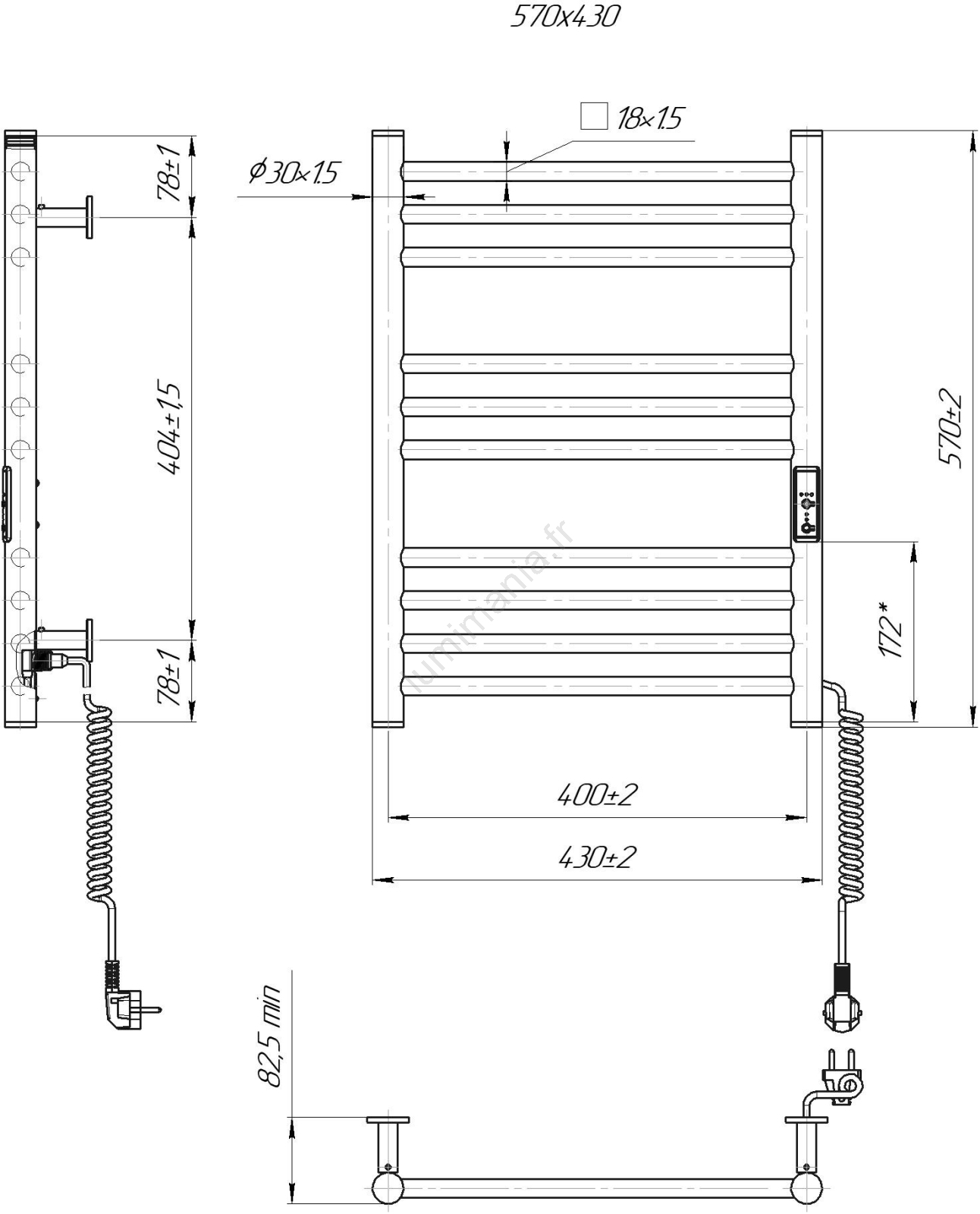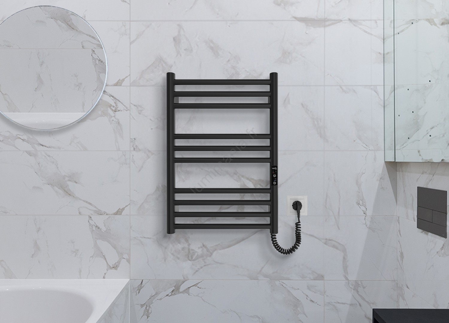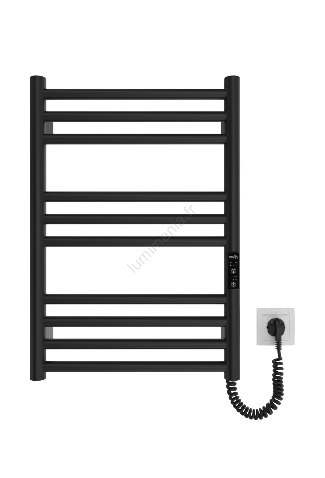 Sèche-serviettes en échelle pour salle de bains HF GREENWICH 100W/230V 57x43 cm noir, raccordement droit, profil rond