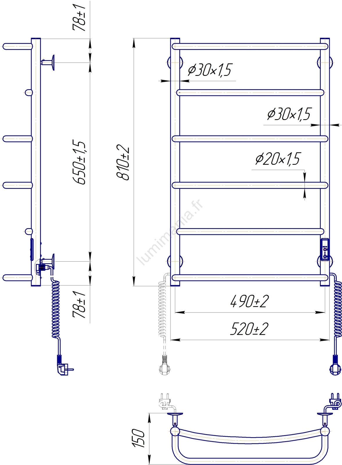 Sèche-serviettes pour salle de bains LUX 105W/230V 81x52 cm, inox / chrome brillant, version droite