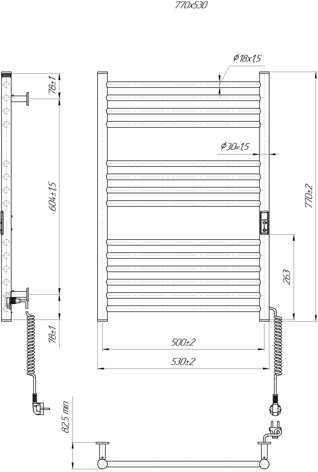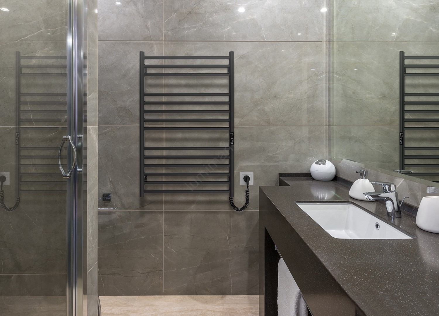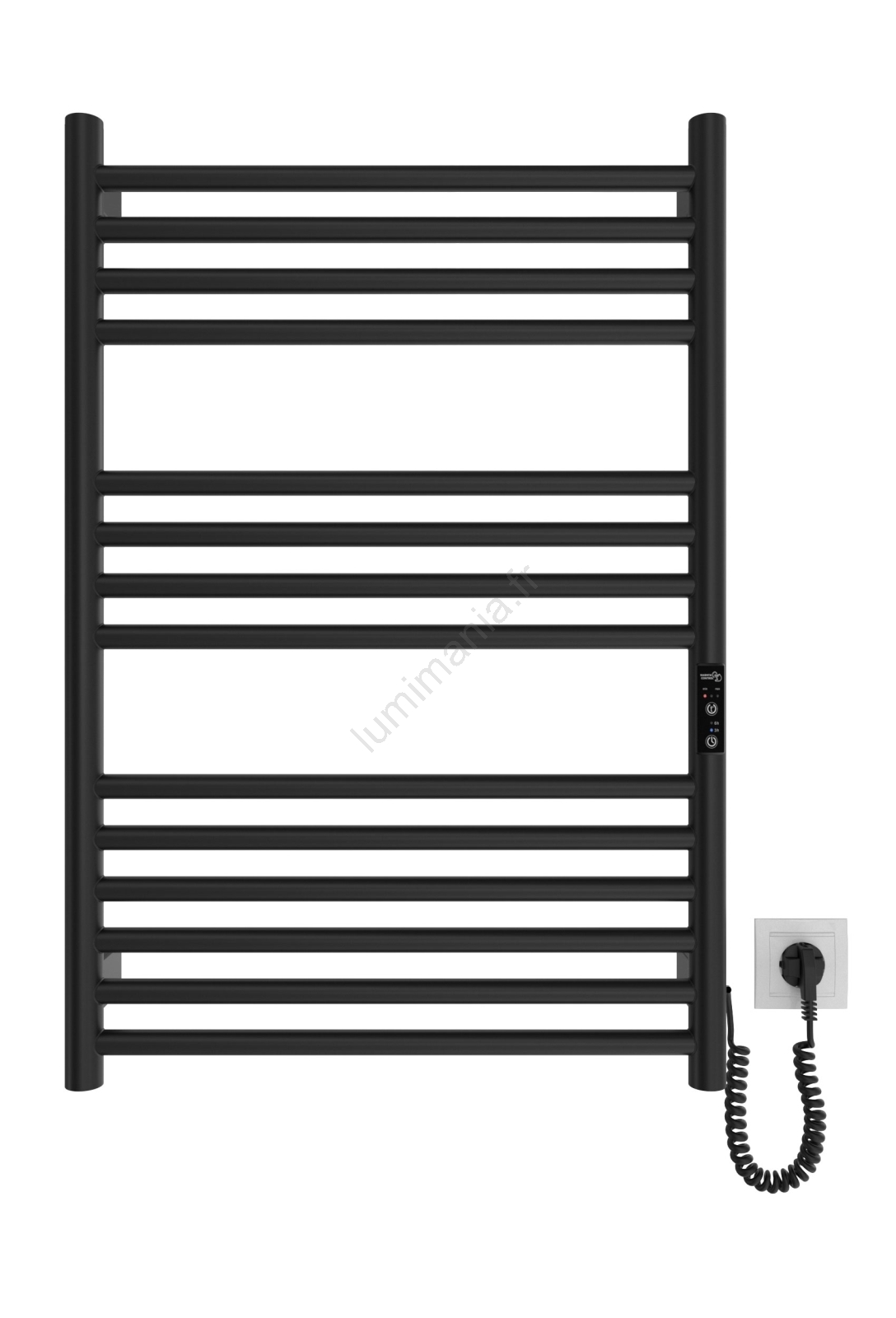 Sèche-serviettes pour salle de bains HF GREENWICH 170W/230V 77x53 cm, noir, raccordement côté droit, profil rond