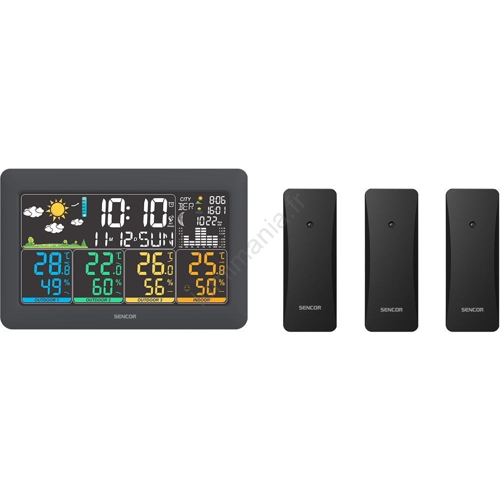 Sencor - Station météo avec écran LCD couleur + 3 capteurs 3xAA + 6xAA, noire