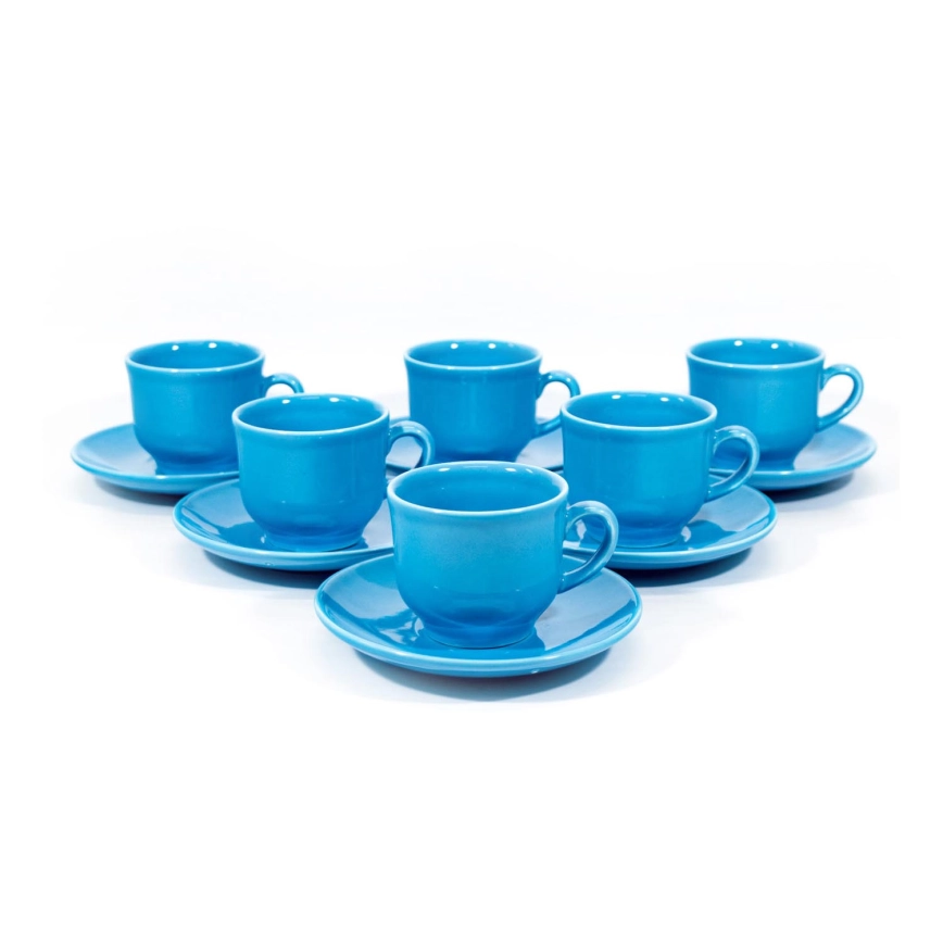 Service 6x tasse en céramique avec sous-tasse turquoise