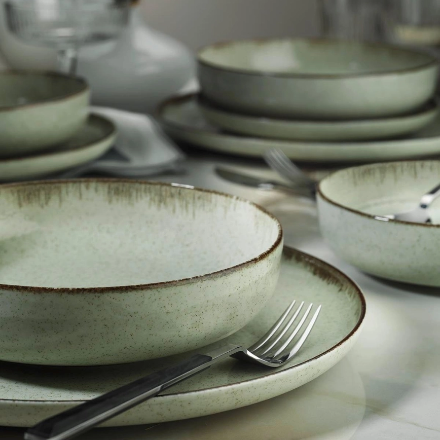 Service de table 12 pièces vert/porcelaine