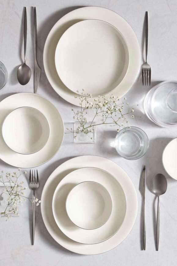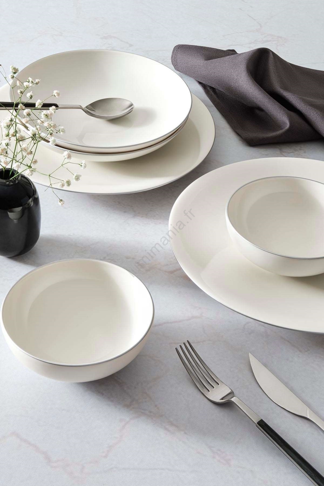 Service de table 18 pièces en porcelaine blanche avec finitions argentées