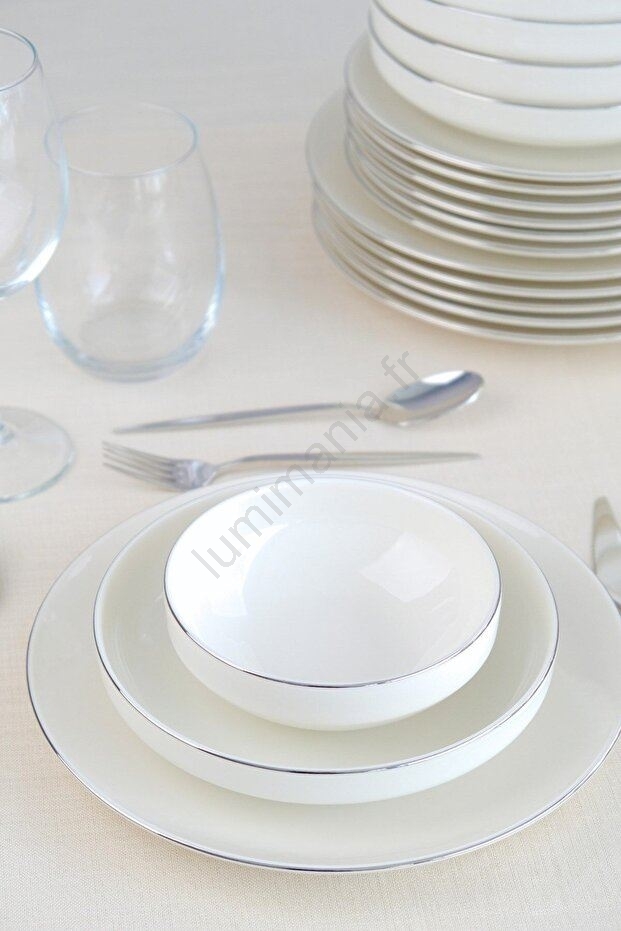 Service de table 24 pièces blanc/argent/porcelaine