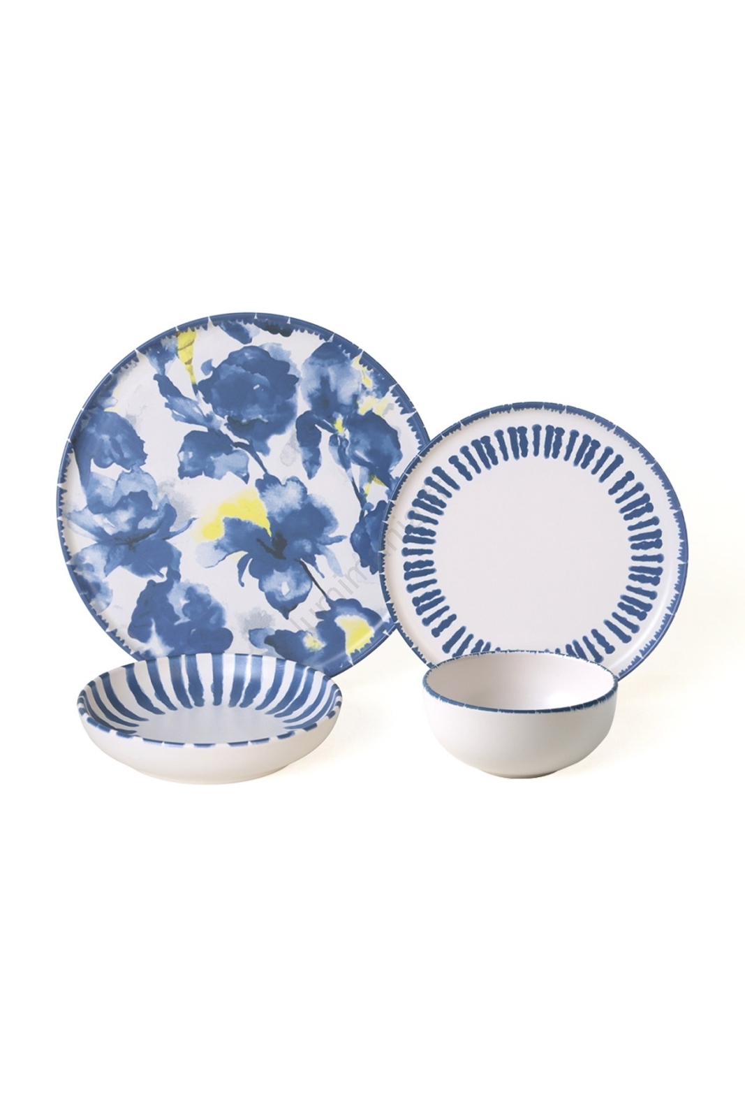 Service de table 24 pièces, blanc/bleu, en grès
