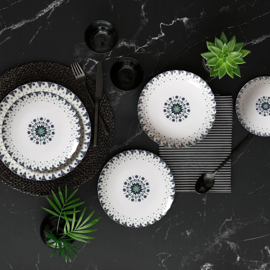 Service de table 24 pièces, blanc/bleu, en porcelaine