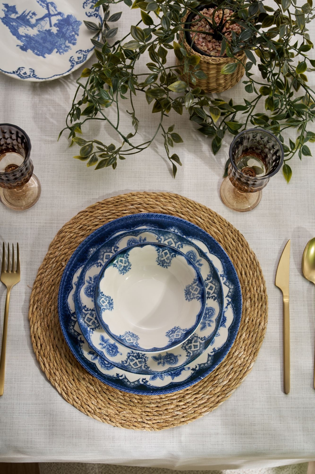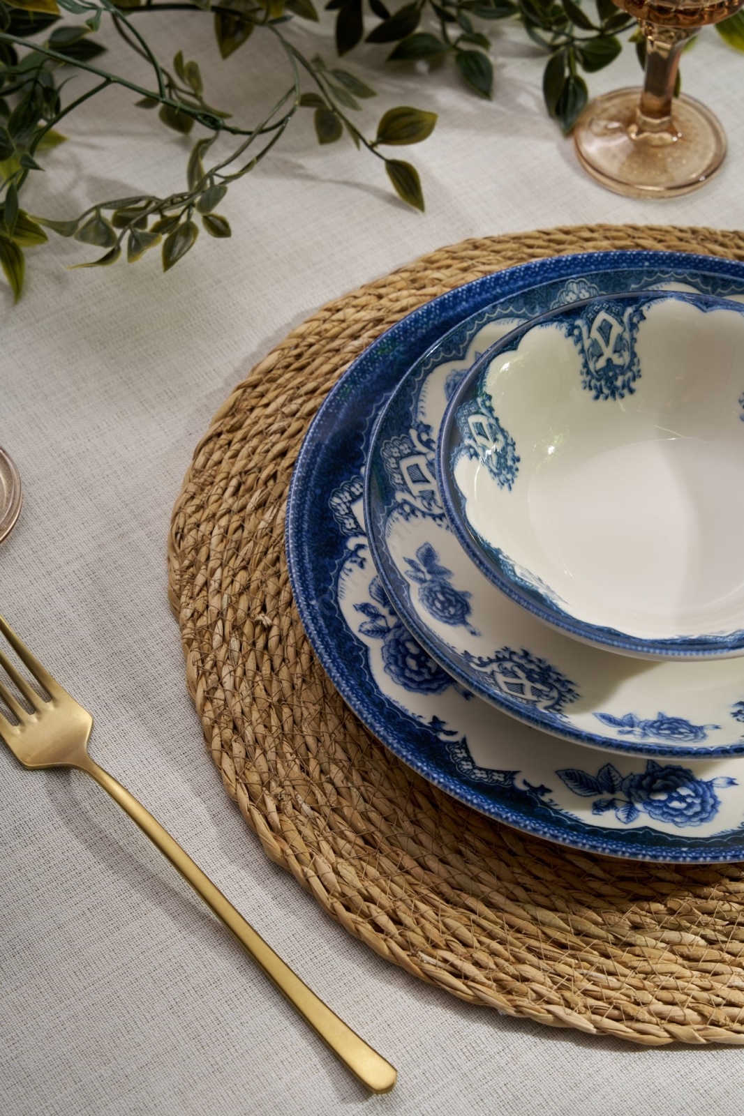 Service de table 24 pièces bleu/blanc/porcelaine