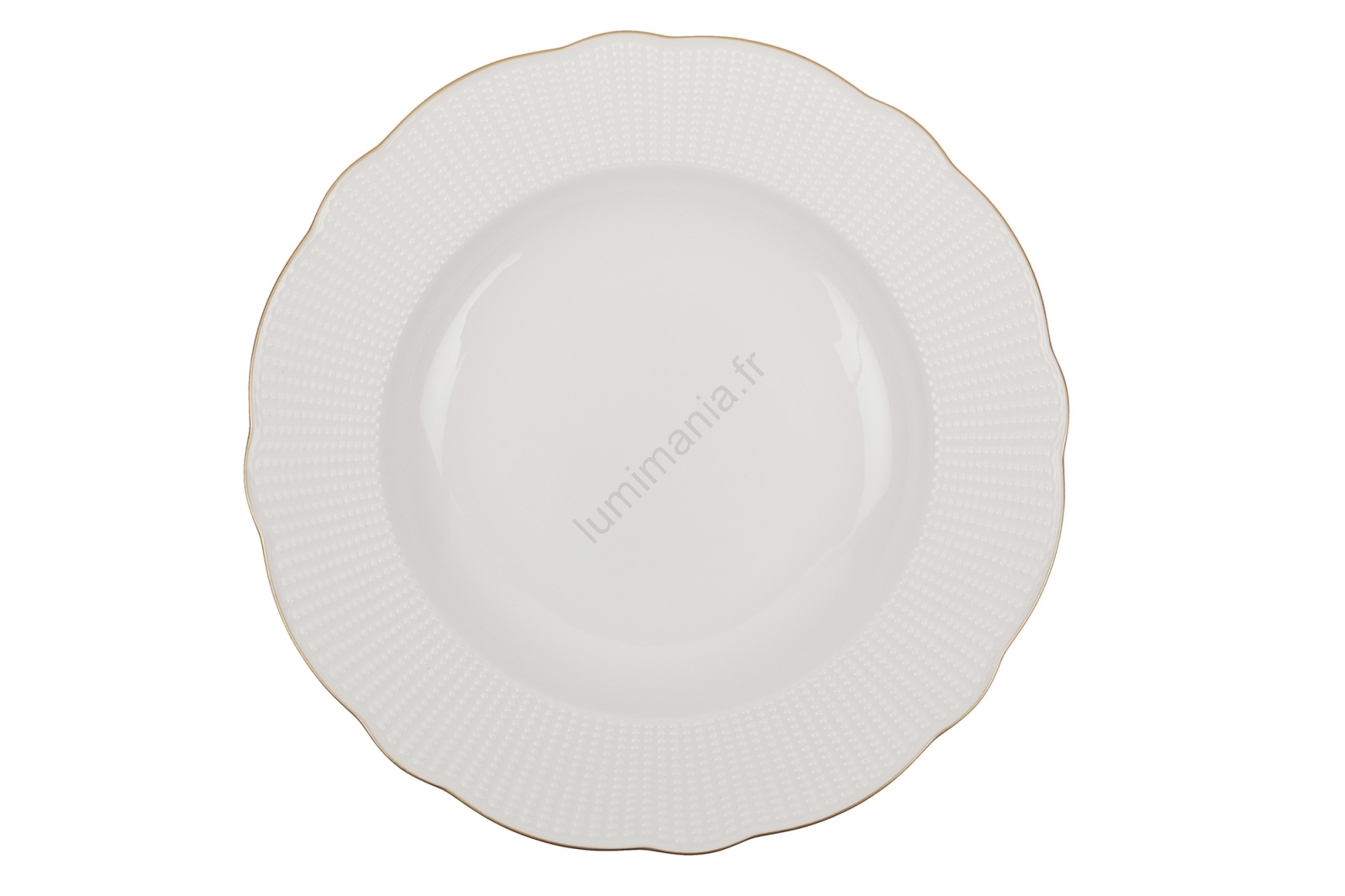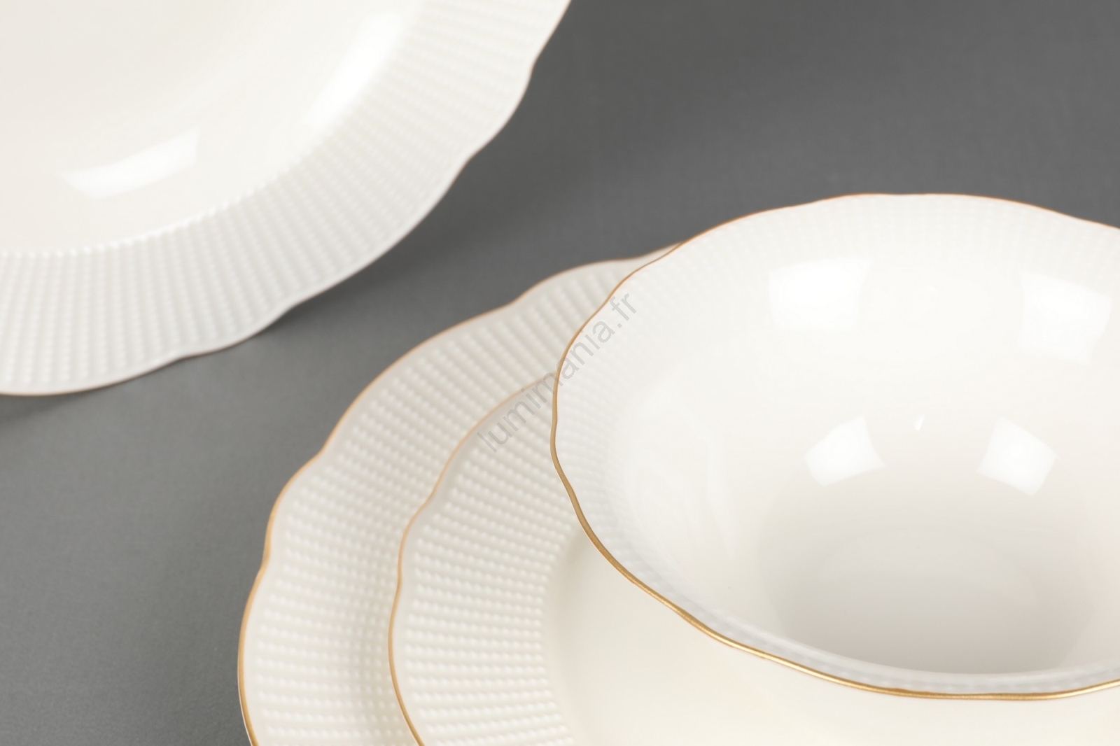 Service de table 24 pièces en porcelaine blanche avec finitions dorées