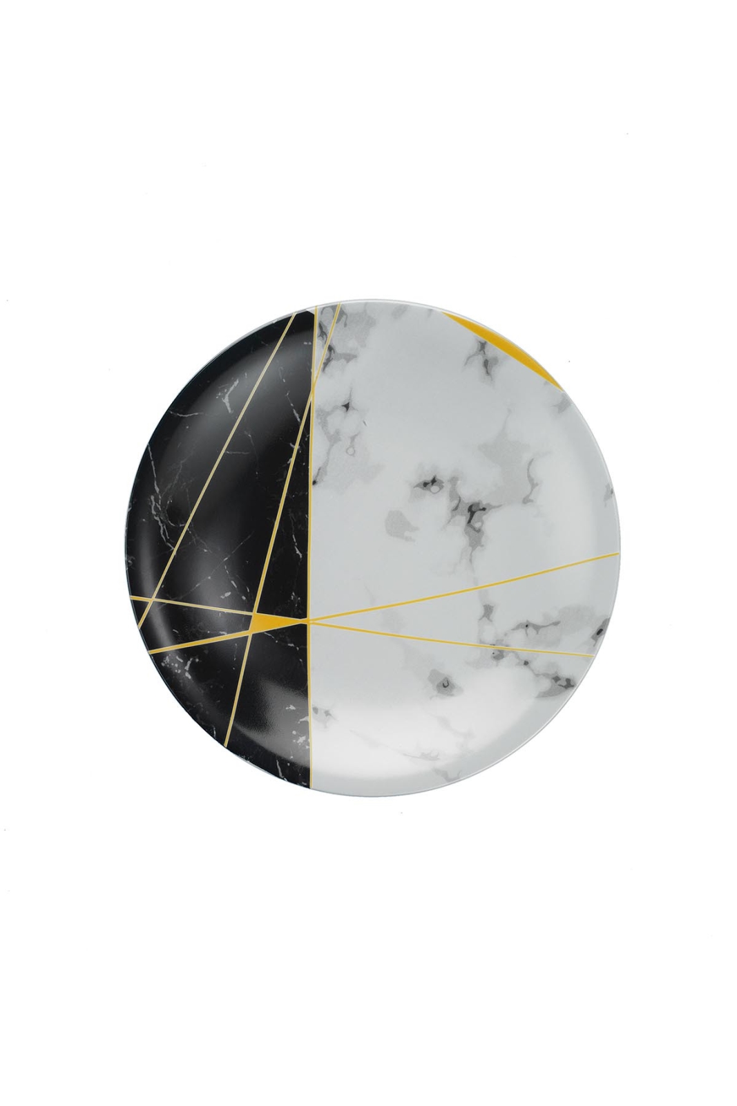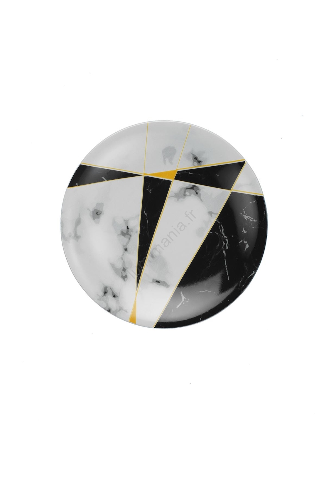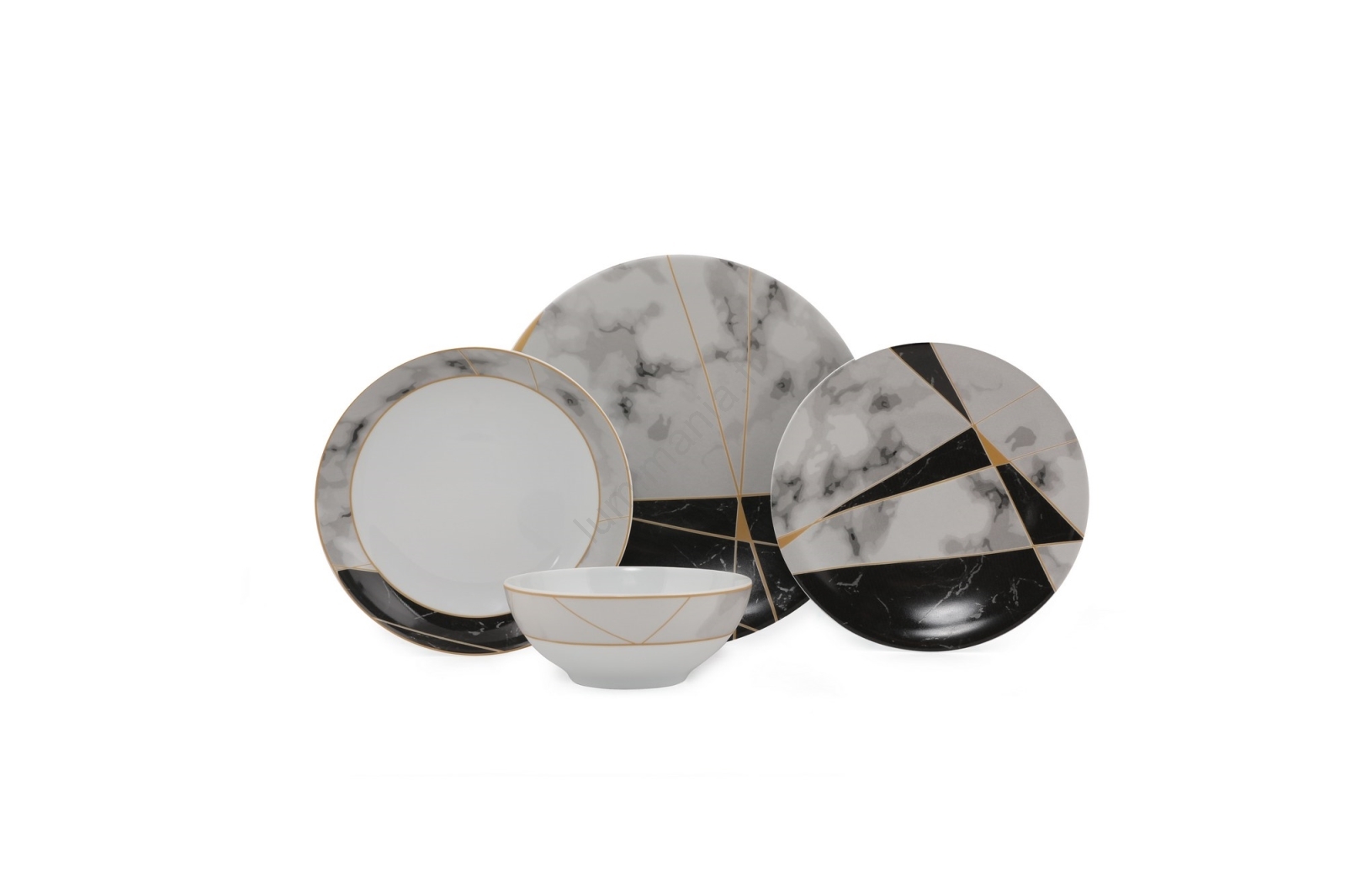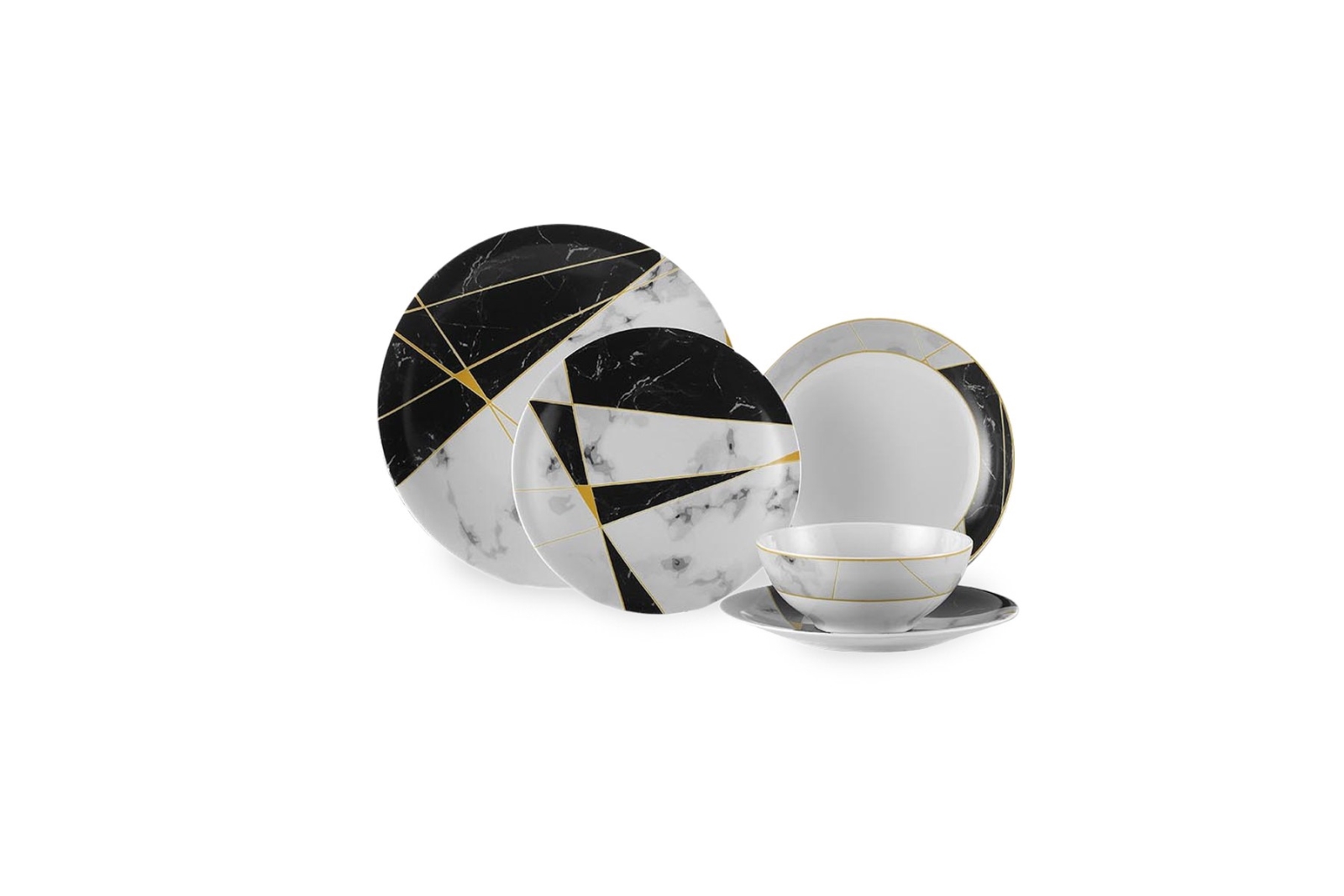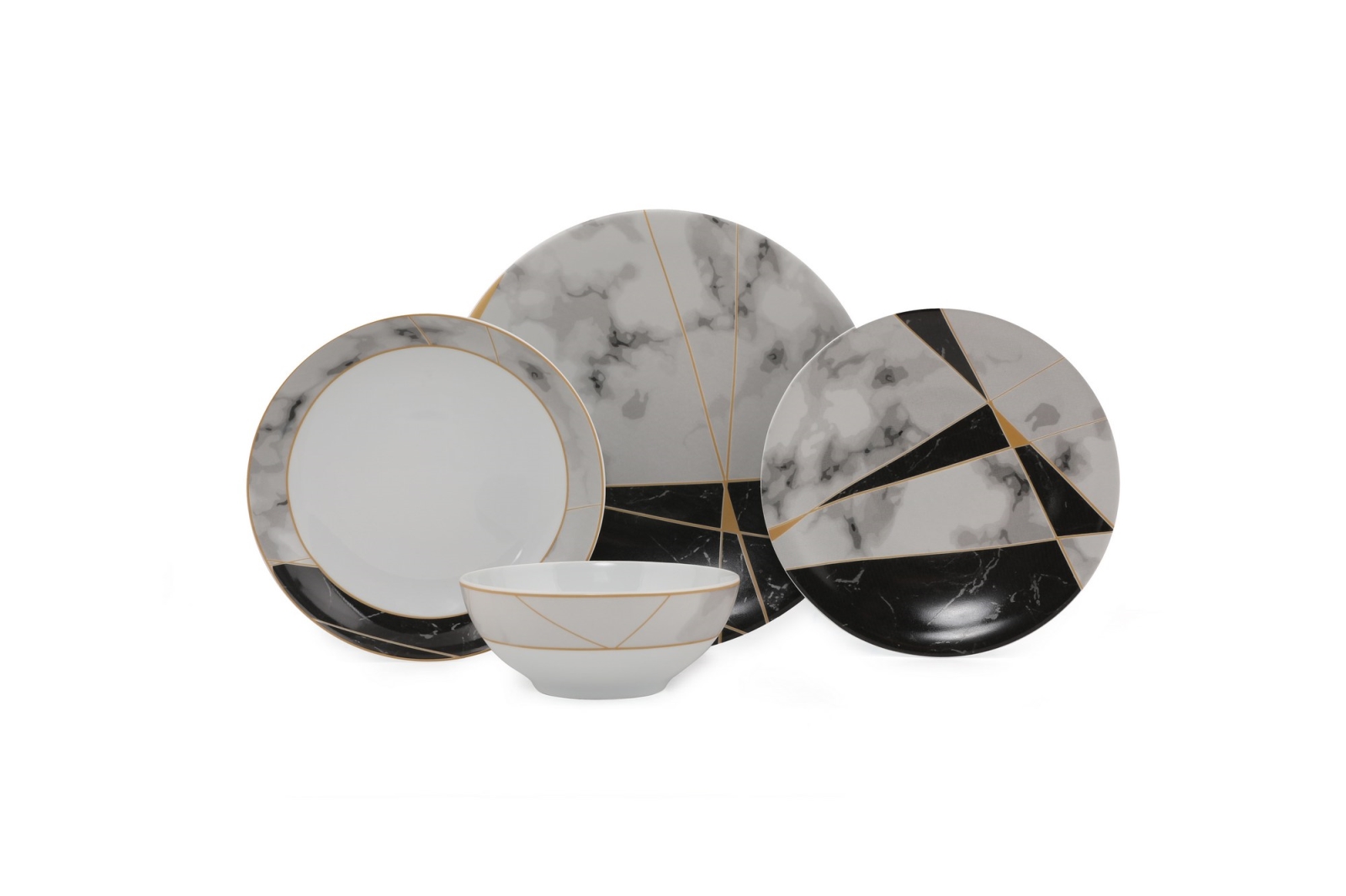 Service de table 24 pièces en porcelaine, noir/blanc/doré
