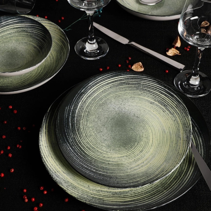 Service de table 24 pièces en porcelaine, vert/noir