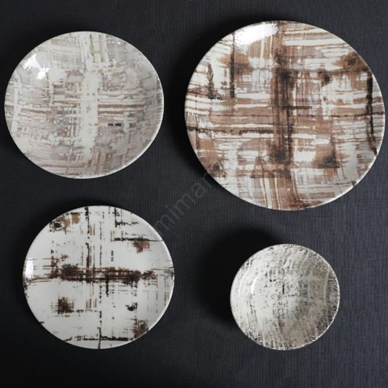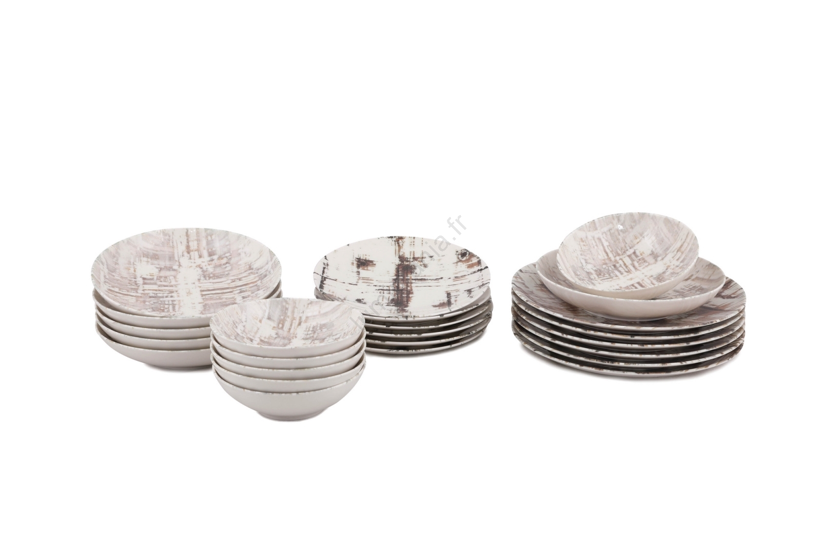 Service de table 24 pièces, marron/blanc, en porcelaine