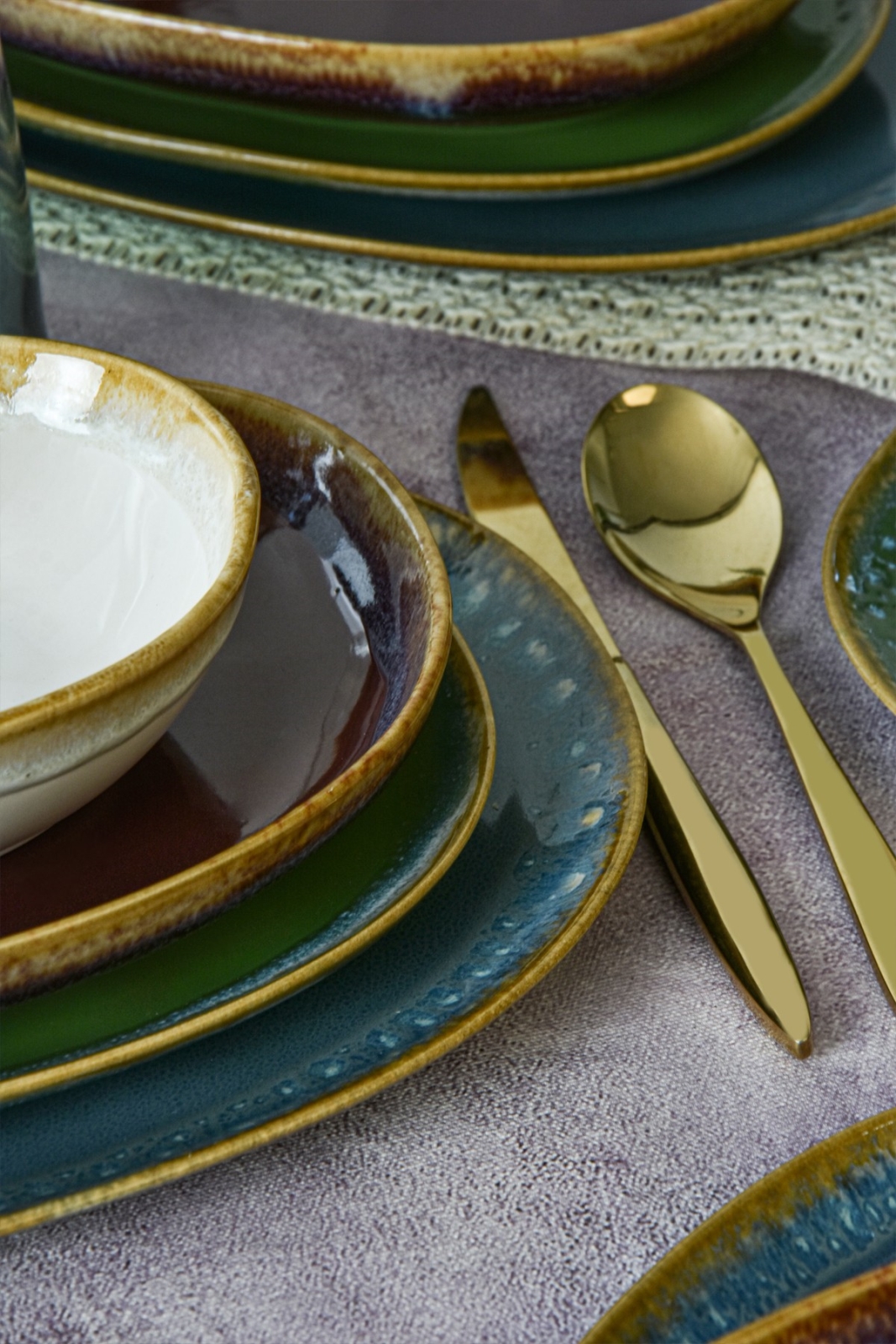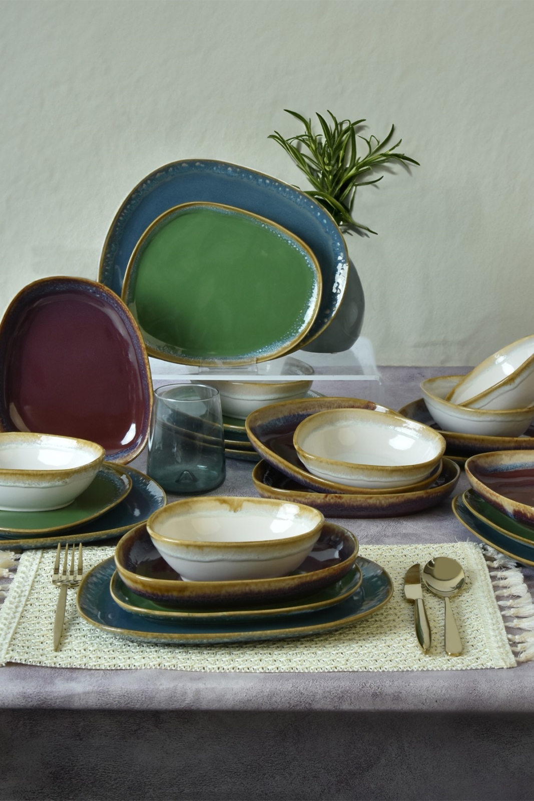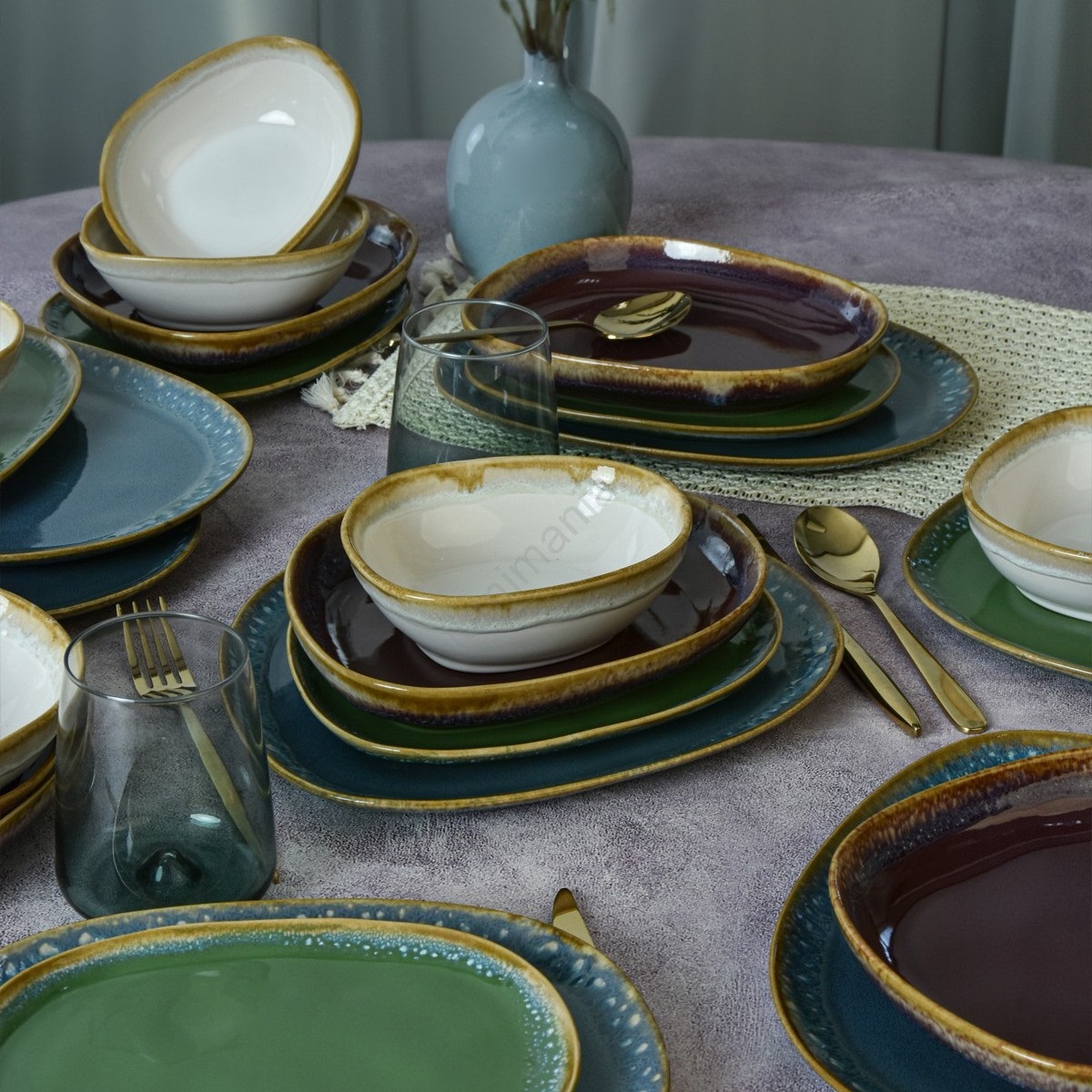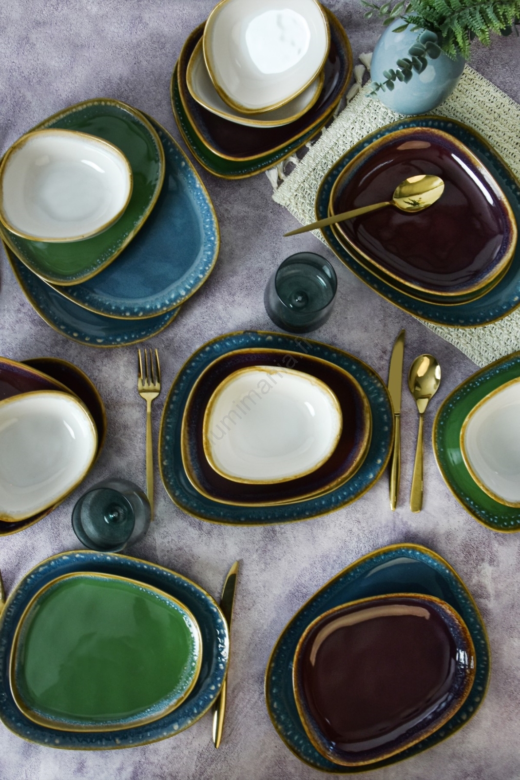 Service de table 24 pièces multicolore en grès