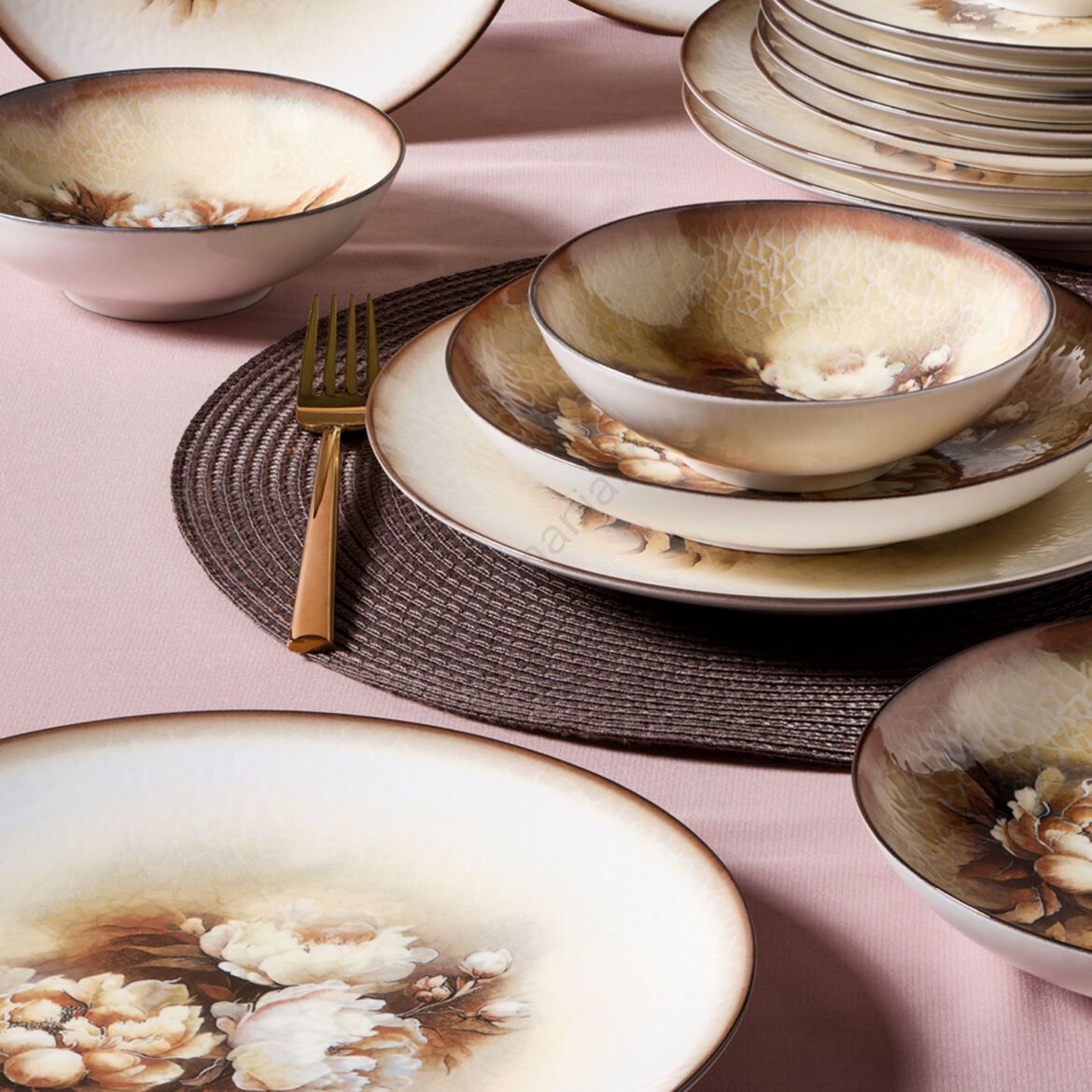 Service de table 26 pièces, beige/marron/blanc, en porcelaine