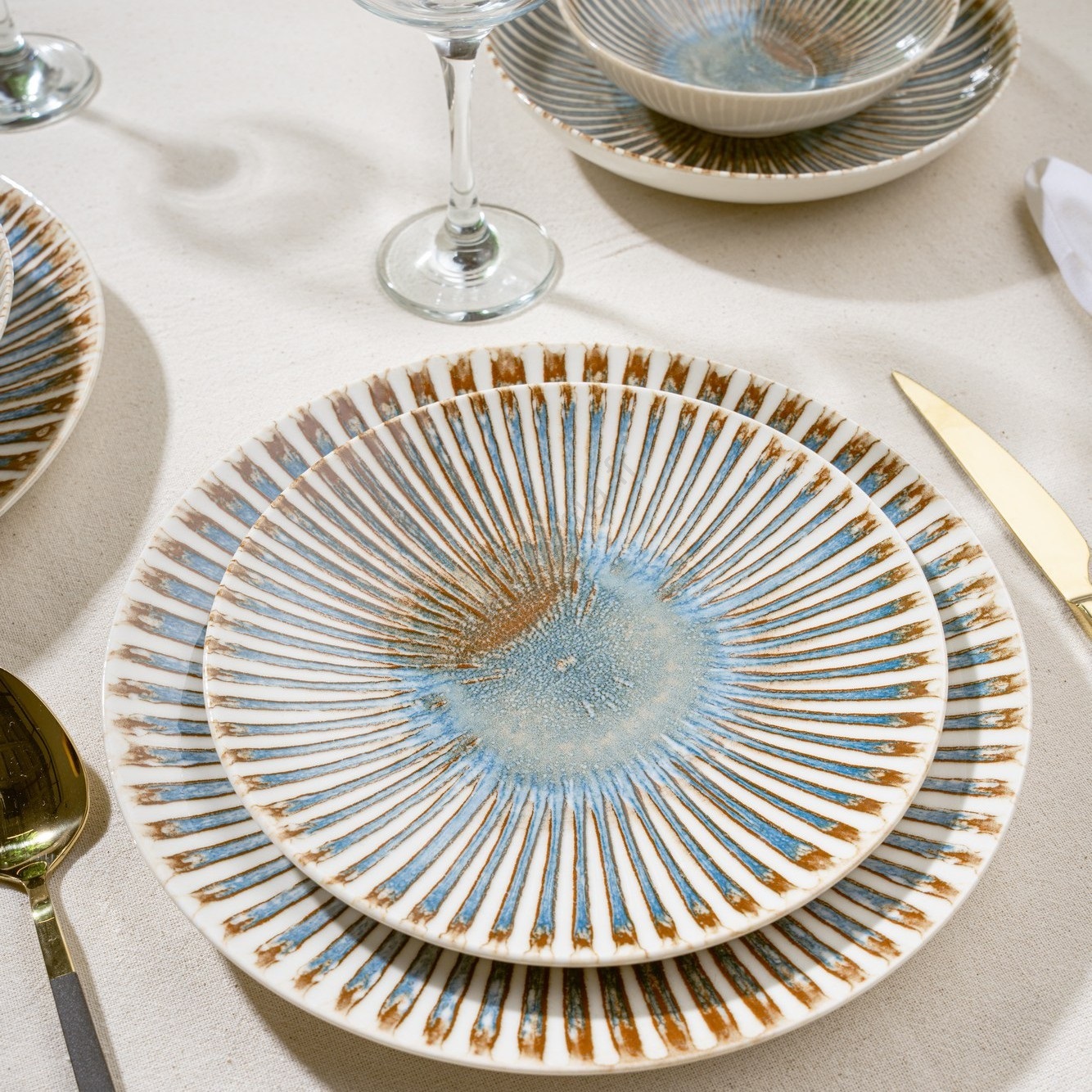 Service de vaisselle 24 pièces en porcelaine multicolore