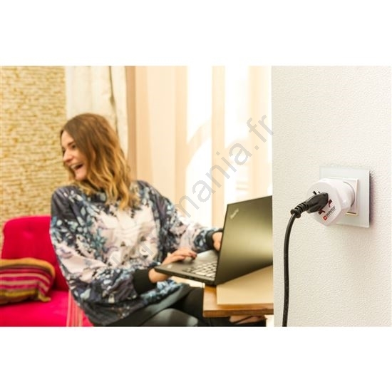 • 2e adaptateur pour autres cordons d'alimentation (Monde vers Europe), permet de connecter des appareils avec ou sans mise à la terre équipés de fiches des types Royaume‑Uni, Suisse, Italie, Brésil, Australie/Chine, États‑Unis.