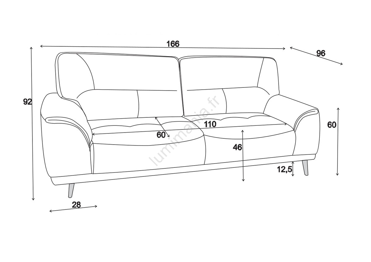 • Avec une hauteur d'assise confortable de 46 cm et une profondeur de 60 cm, il garantit une assise ergonomique et relaxante.