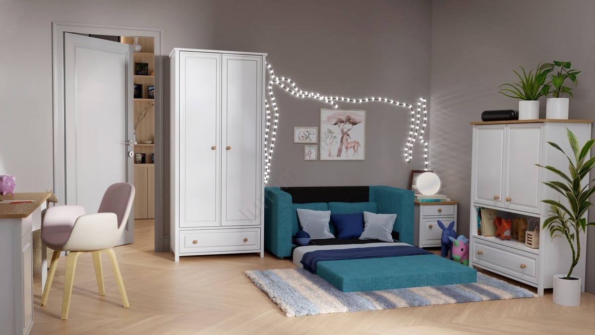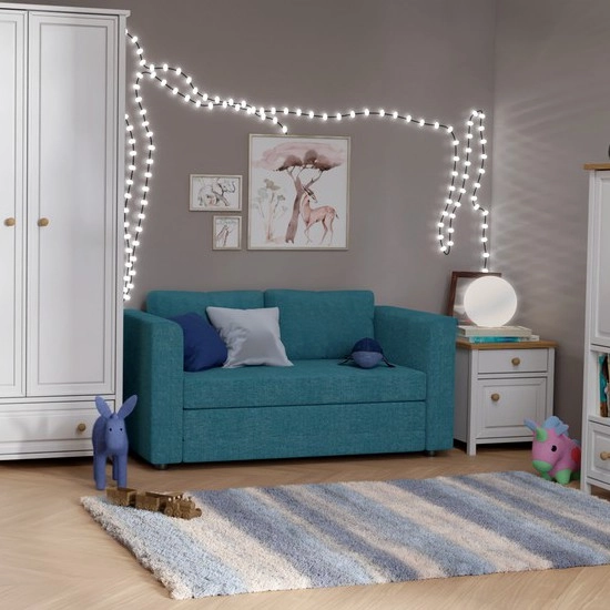 • Canapé-lit rembourré 2 places avec accoudoirs LAYLA, bleu