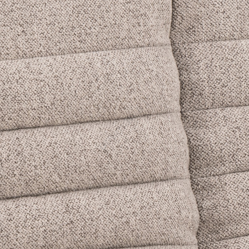 • Tissu Monza beige, piètement en acier thermolaqué noir mat avec système click & clack et surpiqûres horizontales.
