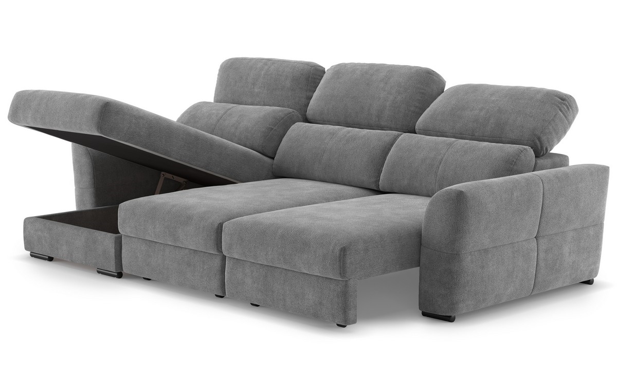 Canapé d'angle réversible convertible 3 places avec coffre de rangement TRENTO gris
