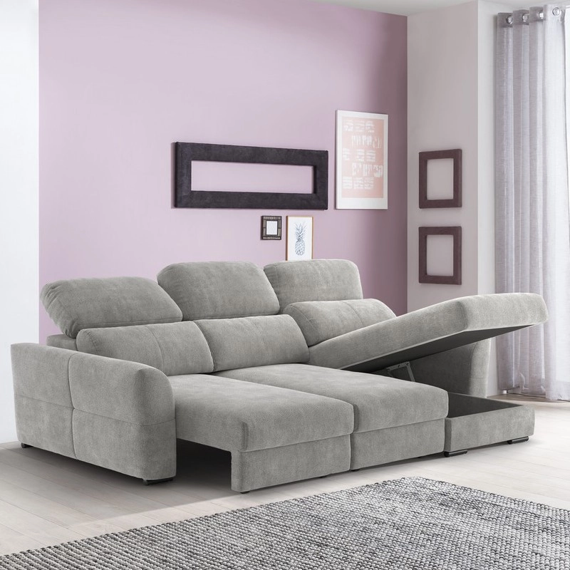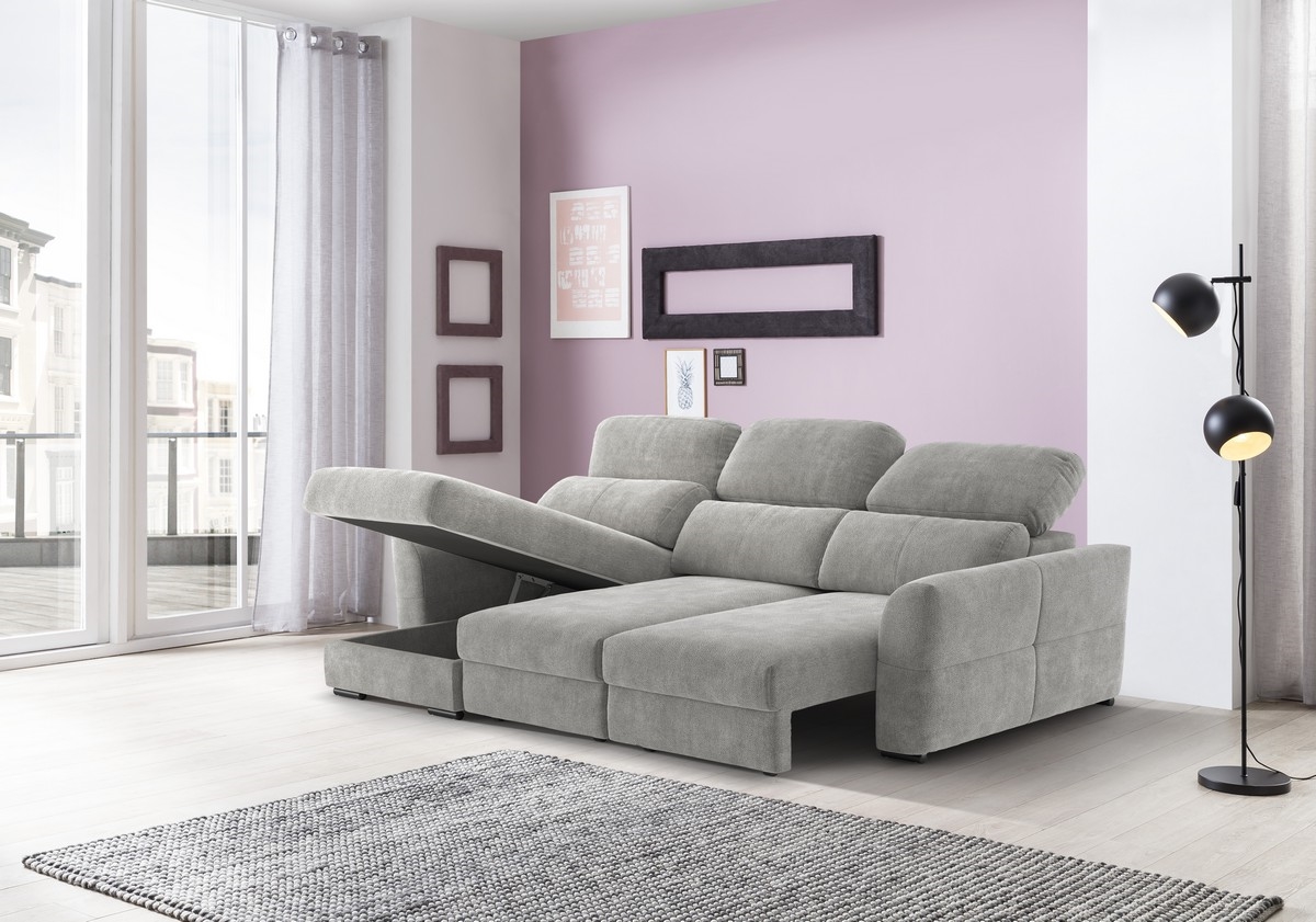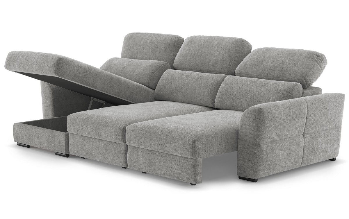 Canapé d'angle réversible et convertible 3 places avec coffre de rangement TRENTO gris clair