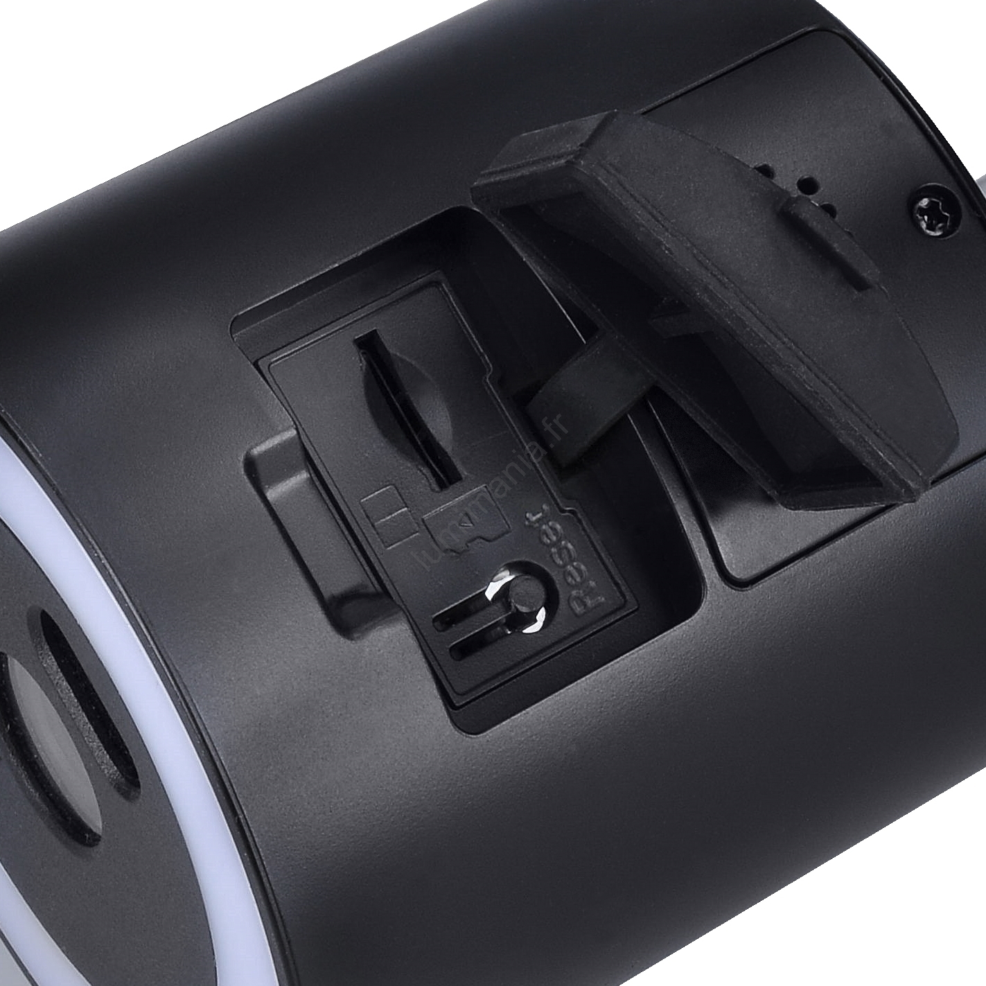 • Vision nocturne : la caméra propose une vision nocturne via diodes IR (portée jusqu'à 10 mètres) ou via une LED délivrant un flux lumineux de 500 lumens (portée jusqu'à 8 mètres).