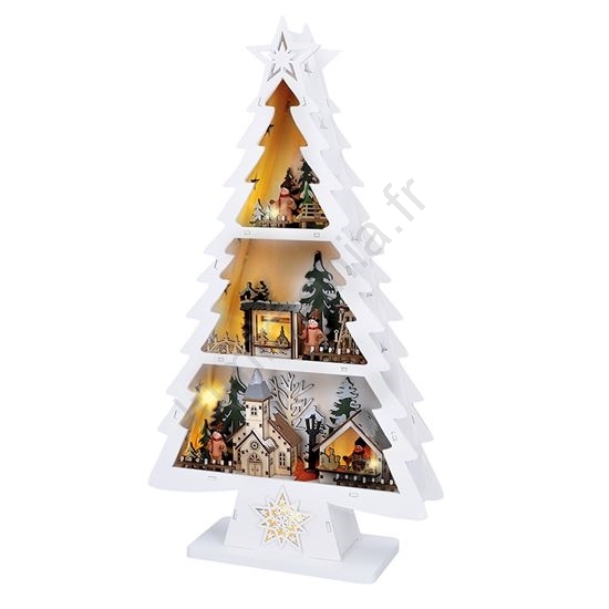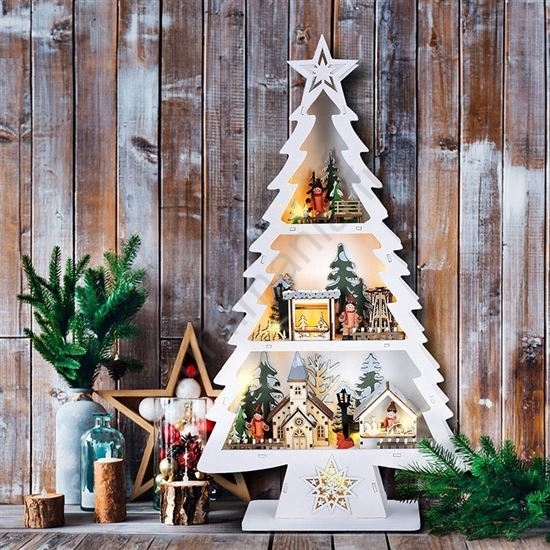 Décoration de Noël LED 13xLED/2xAA — sapin en bois