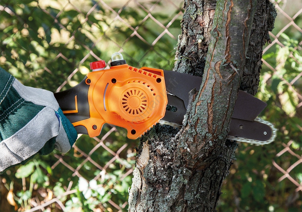 • Tronçonneuse à chaîne portable sur batterie.