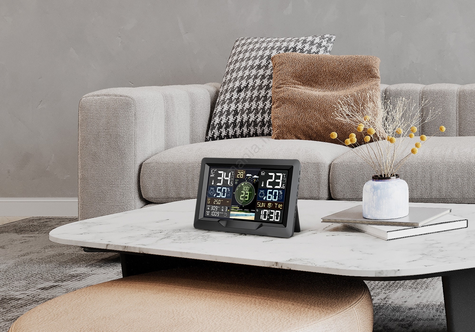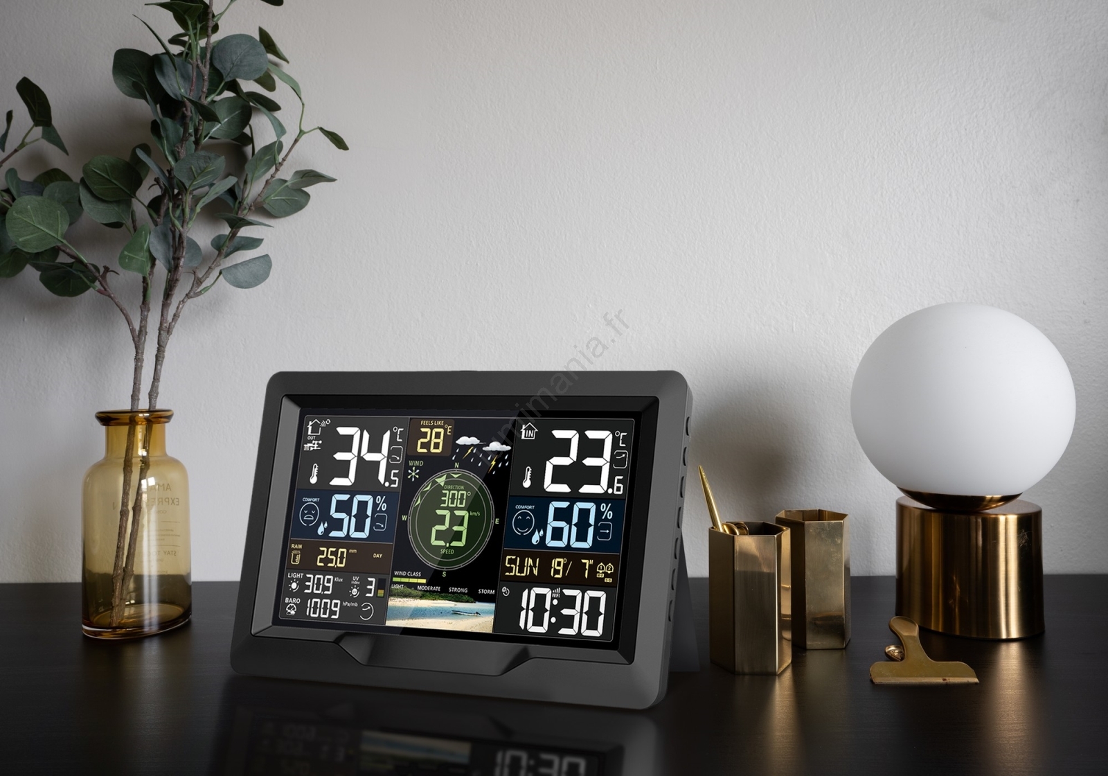 • Station météorologique intelligente professionnelle avec écran LCD couleur.