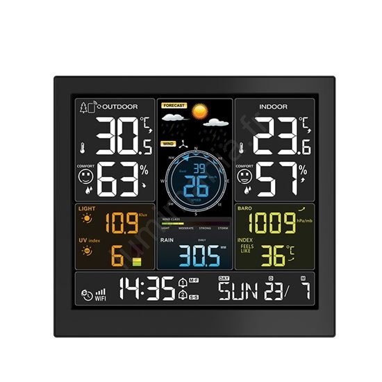 • Station météo intelligente professionnelle avec écran LCD couleur.