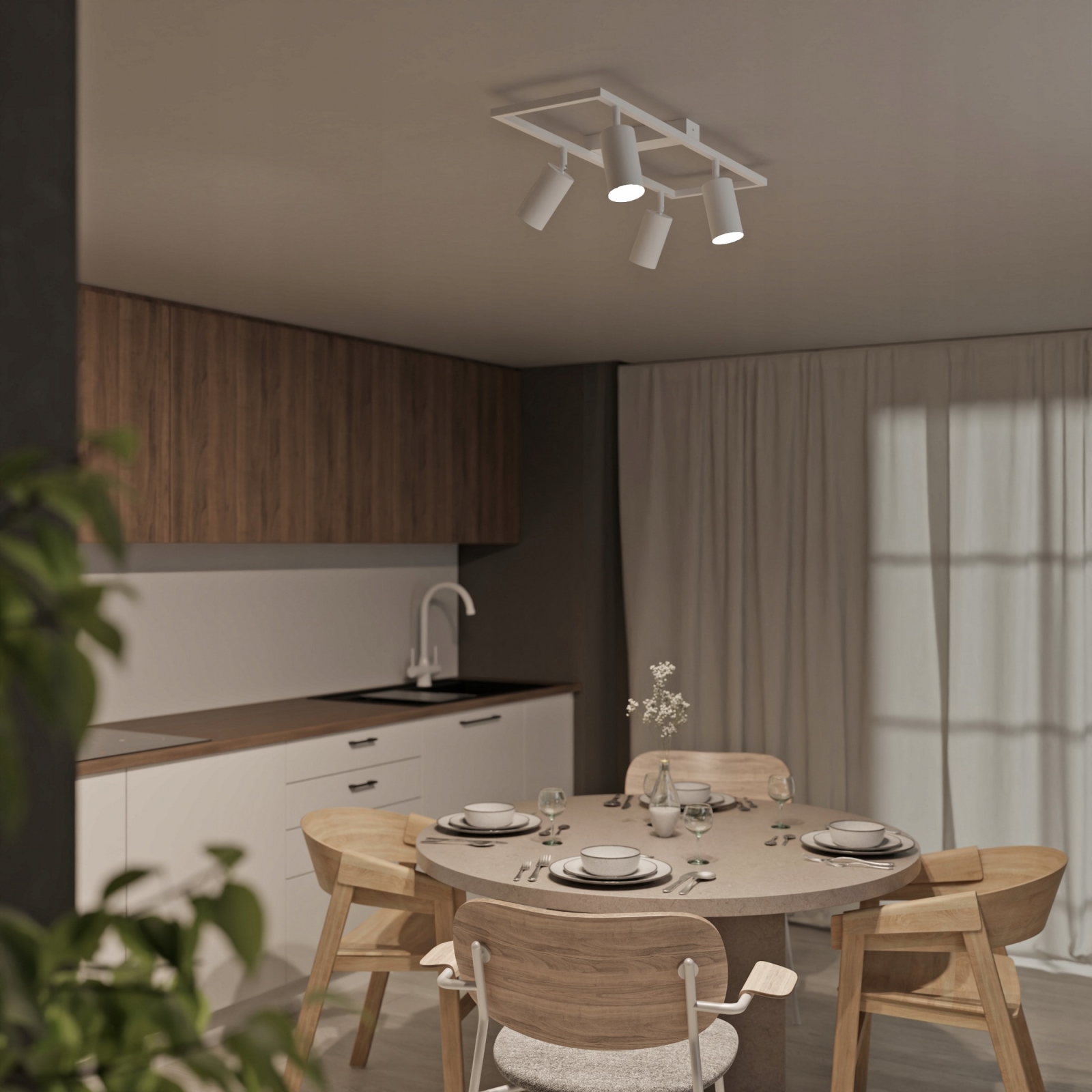 Spot 4xGU10/30W/230V blanc caractérise un design agréable et fonctionnel.  Une ampoule à culot GU10 convient pour ce luminaire. Ici, vous pouvez acheter d'autres ampoules à des prix avantageux. Vous aurez un ajout intéressant dans votre intérieur.