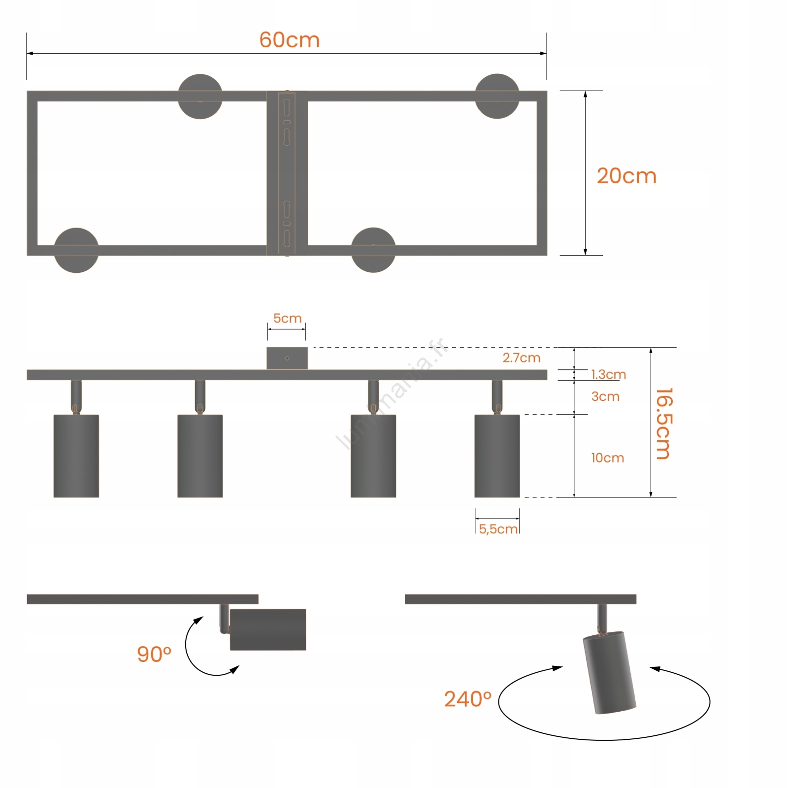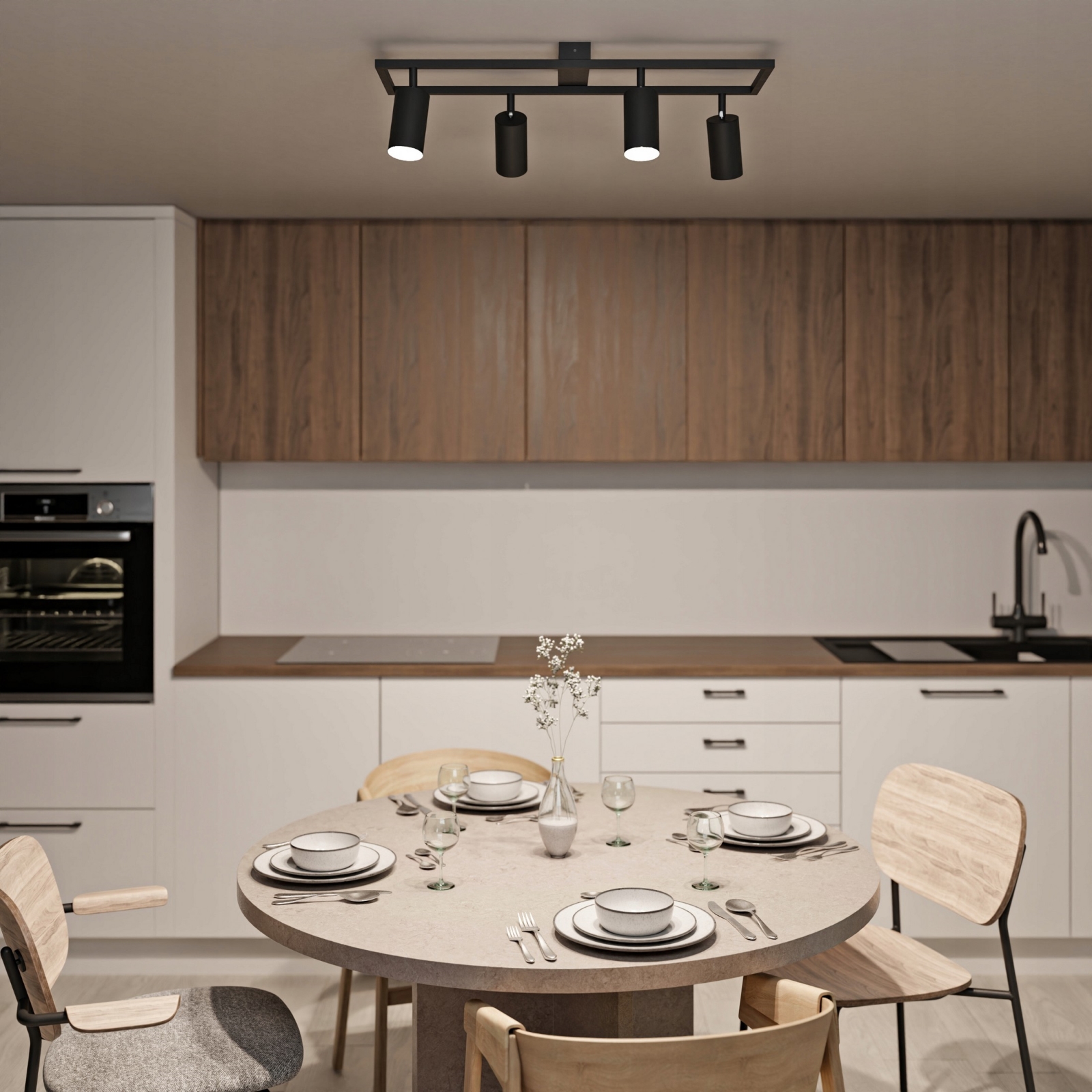 Spot 4xGU10/30W/230V noir caractérise un design agréable et fonctionnel.  Une ampoule à culot GU10 convient pour ce luminaire. Ici, vous pouvez acheter d'autres ampoules à des prix avantageux. Vous aurez un ajout intéressant dans votre intérieur.