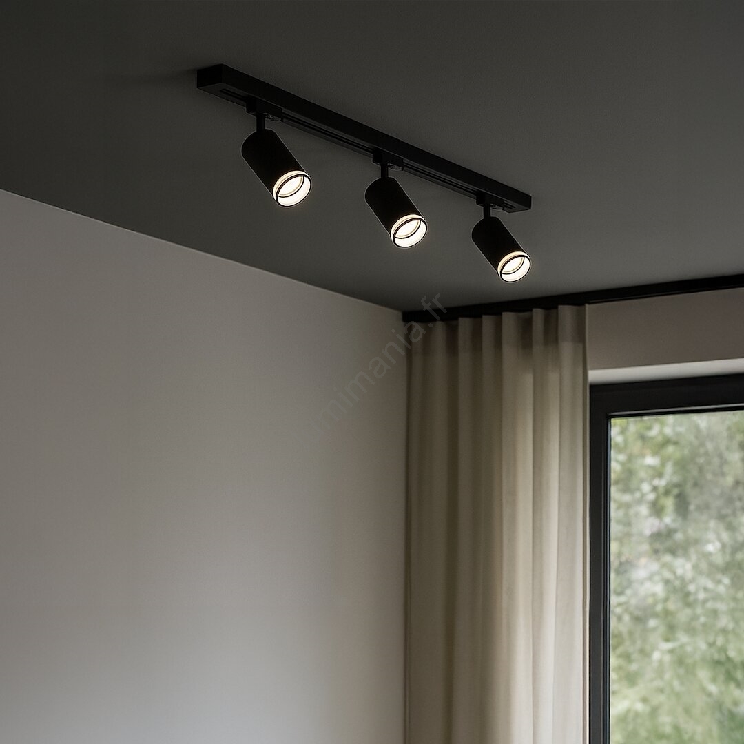 • Spot pour système de rail monophasé PIPE 1xGU10/10W/230V, noir
