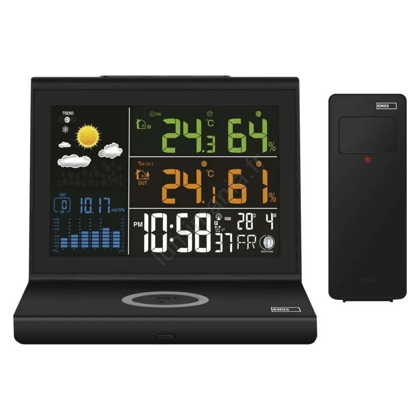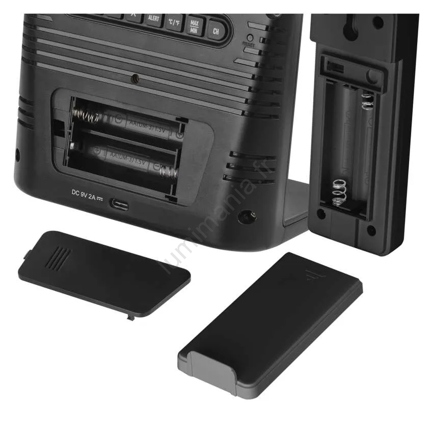Station météo avec recharge sans fil 5V, alimentation 2x AA + 2x AAA, noire