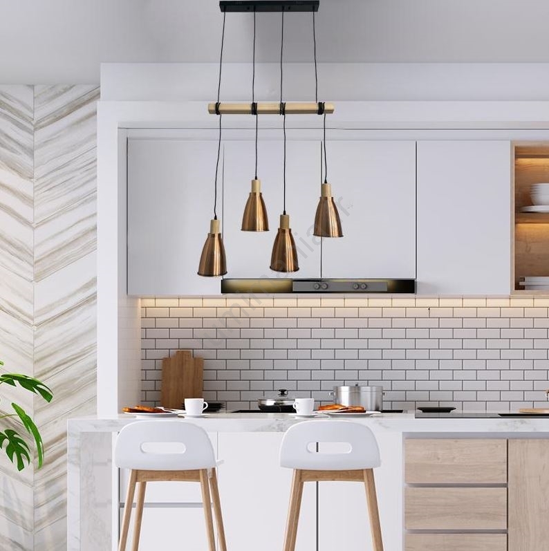 Suspension filaire 4xE27/60W/230V cuivre caractérise un design agréable et fonctionnel.  Une ampoule à culot E27 convient pour ce luminaire. Ici, vous pouvez acheter d'autres ampoules à des prix avantageux. Vous aurez un ajout intéressant dans votre intérieur.