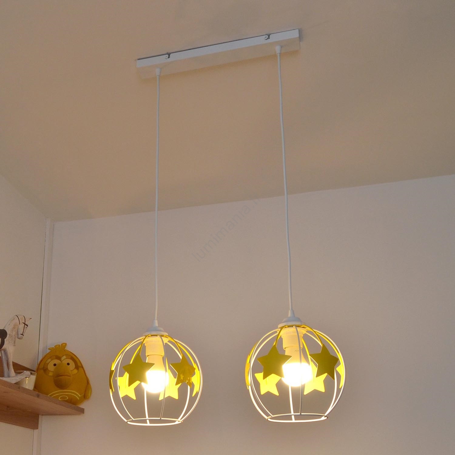 Suspension filaire enfant STARS 2xE27/15W/230V jaune/blanc caractérise un design agréable et fonctionnel.  Une ampoule à culot E27 convient pour ce luminaire. Ici, vous pouvez acheter d'autres ampoules à des prix avantageux. Vous aurez un ajout intéressant dans votre intérieur.