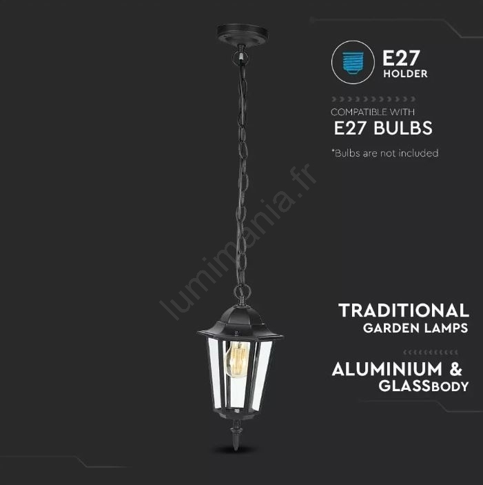 Suspension filaire extérieur 1xE27/40W/230V IP44 noir caractérise un design agréable et fonctionnel.  Une ampoule à culot E27 convient pour ce luminaire. Ici, vous pouvez acheter d'autres ampoules à des prix avantageux. Vous aurez un ajout intéressant dans votre intérieur.