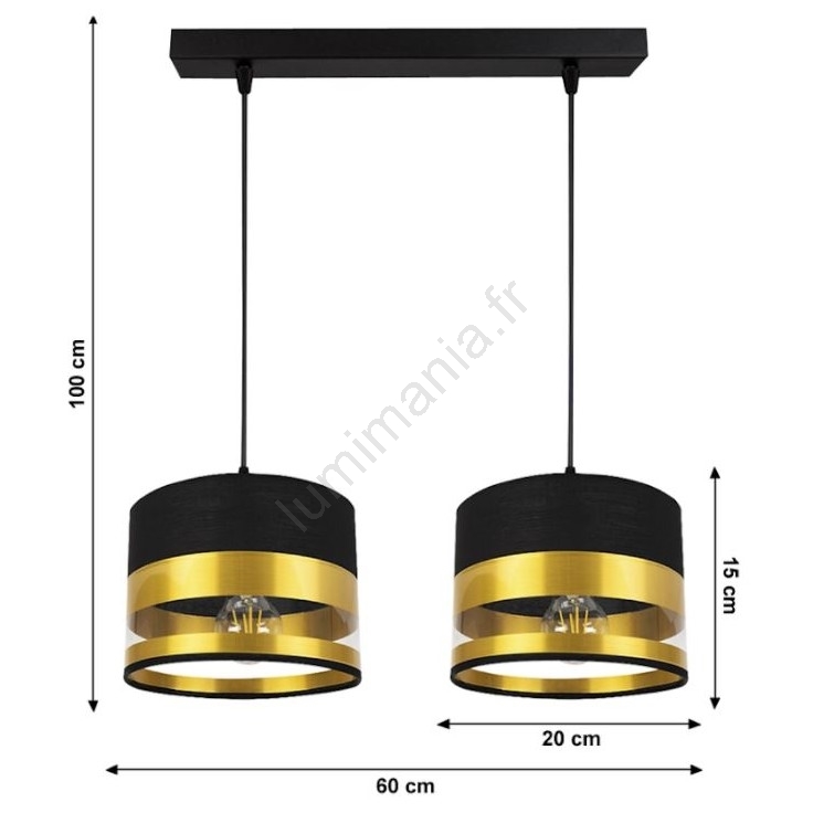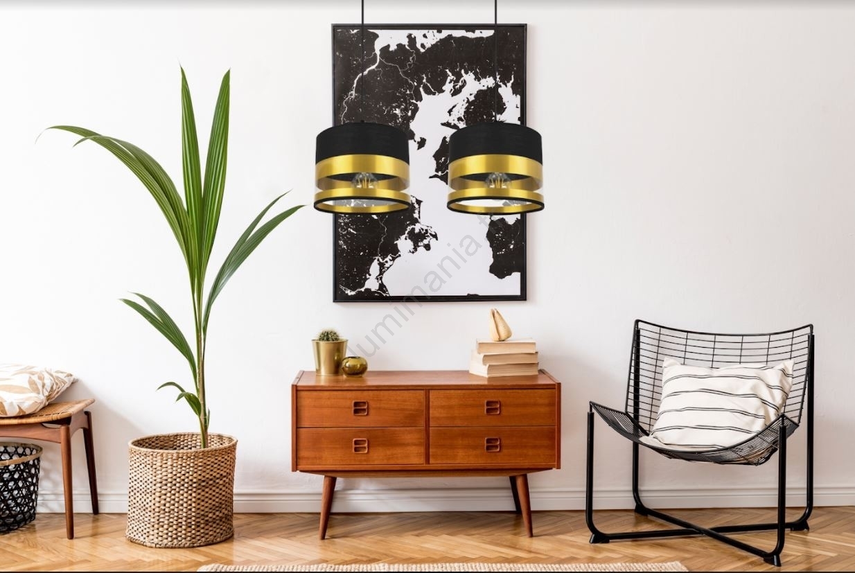 Suspension filaire MILO 2xE27/60W/230V dorée/noire caractérise un design agréable et fonctionnel.  Une ampoule à culot E27 convient pour ce luminaire. Ici, vous pouvez acheter d'autres ampoules à des prix avantageux. Vous aurez un ajout intéressant dans votre intérieur.