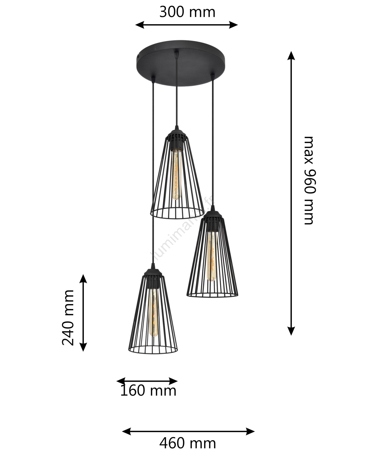 Suspension filaire TORRI 3xE27/15W/230V noir caractérise un design agréable et fonctionnel.  Une ampoule à culot E27 convient pour ce luminaire. Ici, vous pouvez acheter d'autres ampoules à des prix avantageux. Vous aurez un ajout intéressant dans votre intérieur.